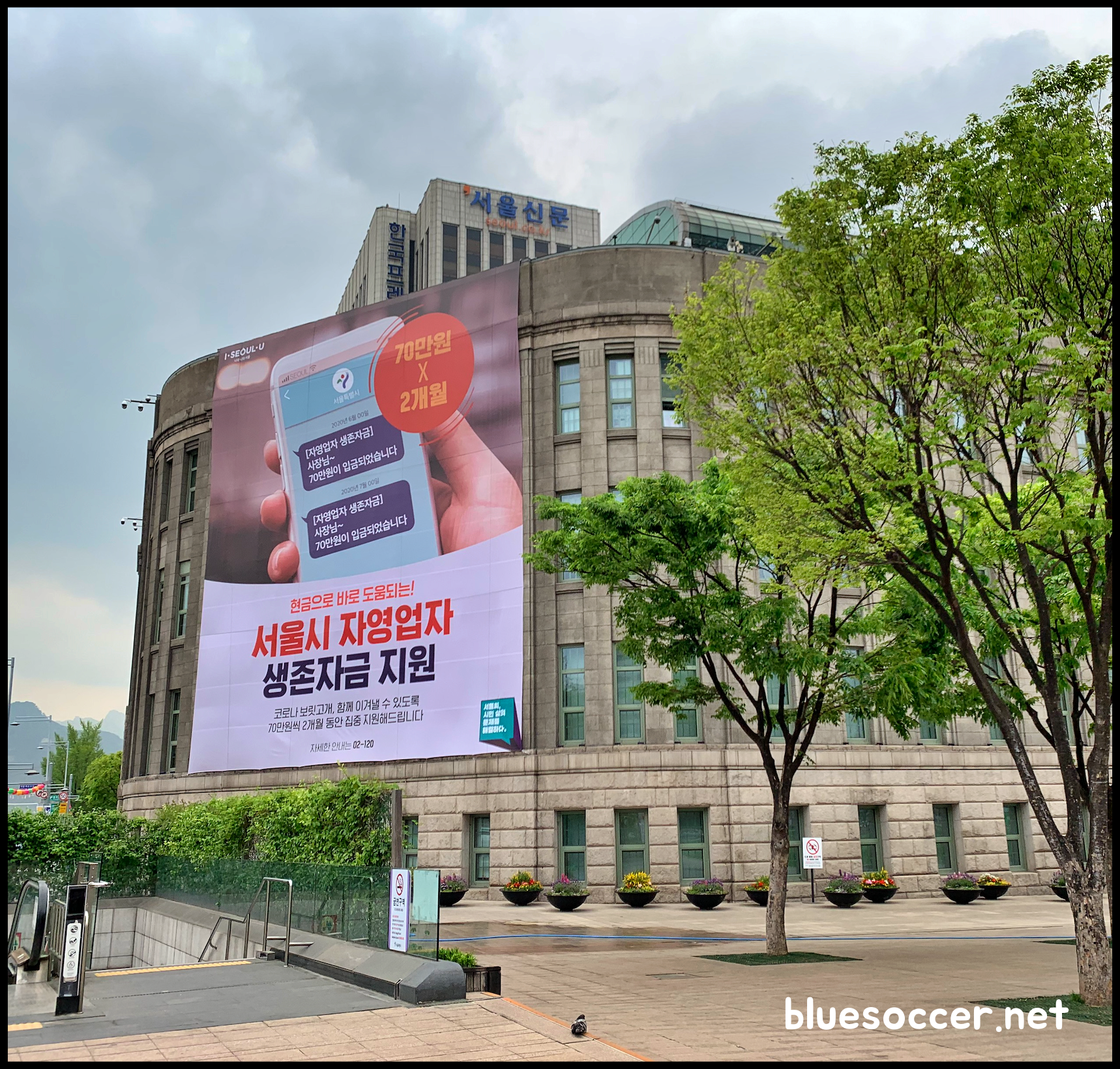[사진 = 서울도서관(구 서울시청) 건물에서는 서울시 자영업자 생존자금 지원 알리는 현수막을 큼지막하게 펼쳤습니다. '현금으로 바로 도움되는!'이라는 메시지가 궁금하신 분이 있을지 모르겠는데, 서울시 자영업자 생존자금 신청 시 2개월 동안 총 140만원(70만원 X 2개월)을 현금으로 받을 수 있습니다. 정부 및 지자체의 코로나19 민생 경제 관련 대책을 보면 국민들에게 지역화폐, 신용카드 또는 체크카드 형태로 지원금을 지급하는 경우가 많았는데 서울시 자영업자 생존자금 현금 형태로 받을 수 있는 차별적 특징이 있습니다. 물론 정부 긴급재난지원금의 경우 저소득층 대상에 포함되는 가구가 현금으로 받았습니다만 대부분의 일반 가구는 현금 지급이 아니었습니다. 반면 서울시 자영업자 생존자금 신청 시에는 현금 받을 수 있는 차이점이 있으며 심사를 거쳐야 합니다. (C) 나이스블루]