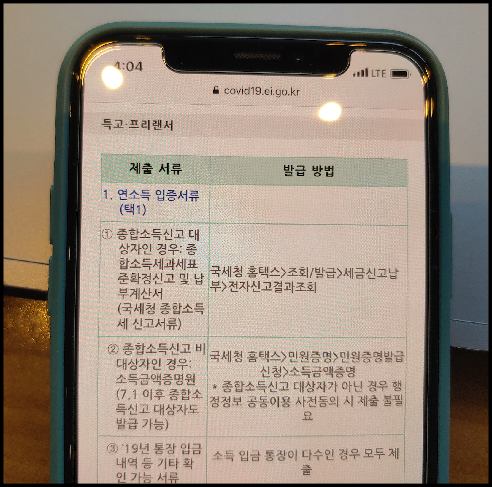 특고 및 프리랜서 제출해야 할 서류는 또 있습니다. '(1) 연소득 입증서류 (2) 지원대상 요건 (3) 소득 감소 증빙' 관련 서류를 하나씩 선택해서 제출하셔야 합니다. 자세한 서류는 다음과 같습니다.