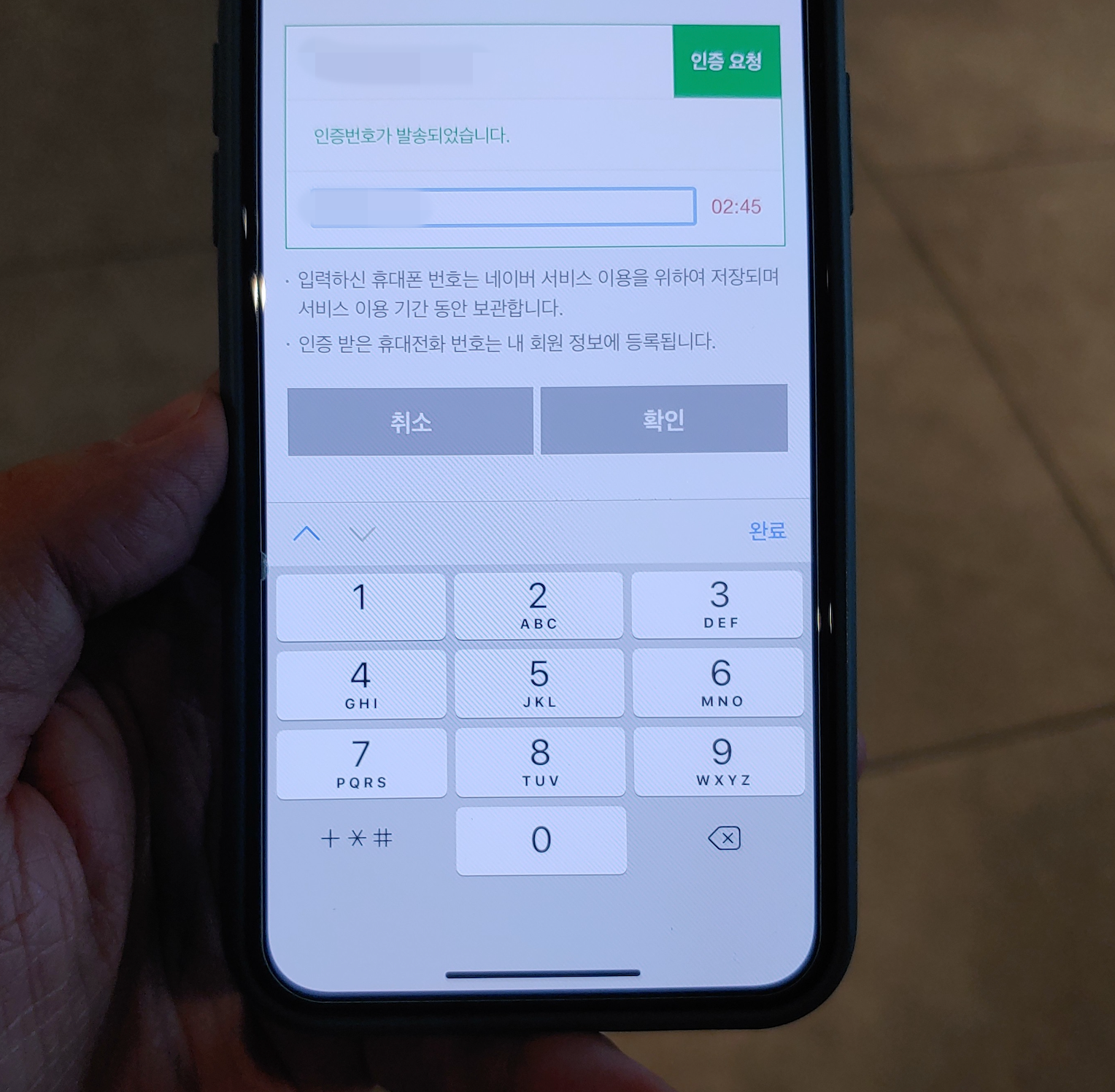 인증번호 발송되면 화면에 입력하시면 됩니다.