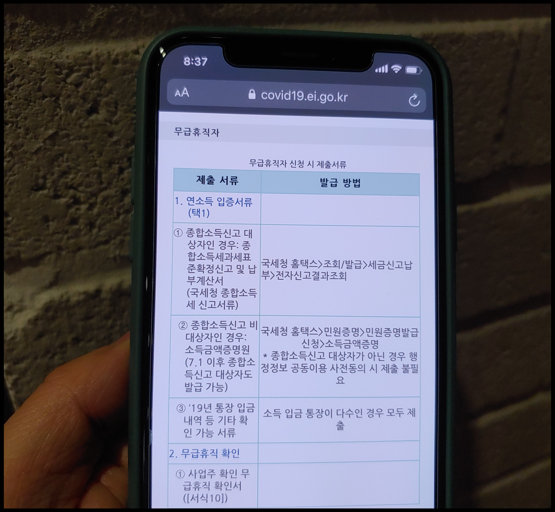 특히 무급휴직자 같은 경우에는 인건비를 받지 못하고 휴직 상태에 있기 때문에 긴급고용안정지원금 받고 싶은 마음이 절실할 것으로 보입니다. 해당 지원금 받으려면 오는 7월 20일까지 긴급고용안정지원금 신청해야 하며 다음과 같은 소득 기준을 갖춰야 합니다. '(1) 신청인 개인 연소득 7천만원 이하 (2) 가구소득 중위 150% 이하(2020년 3월부터 5월 중에서 가장 유리한 달의 기준 중위 소득)'의 조건을 갖춰야 합니다. (1)에 대해서는 종합소득세 신고 대상자라면 종합소득세과세표준확정 신고 및 납부계산서 제출해야 하며 또는 종합소득세 신고 비 대상자 분은 소득금액증명원 필요합니다. 둘 다 아니라면 2019년 통장 입금내역 등 연소득 7천만원 이하 확인 가능한 서류가 필요합니다.