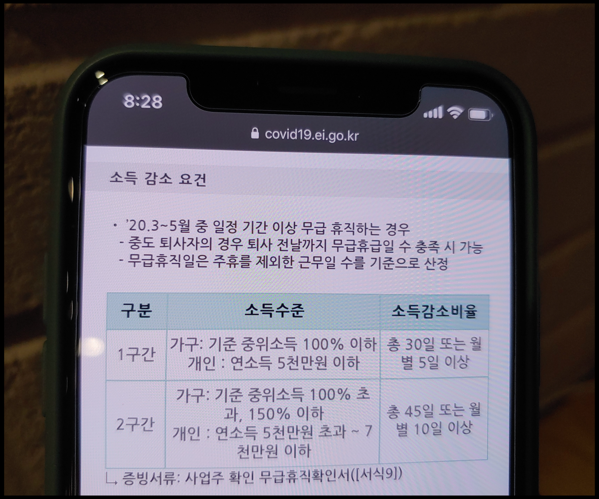 [사진 = 무급휴직자의 긴급고용안정지원금 신청 과정에서 사업주 확인 무급휴직확인서 같은 경우에는 2020년 3월부터 5월까지의 소득 감소 요건 파악할 때 필요합니다. 1구간과 2구간의 소득수준 및 소득감소비율이 서로 다릅니다. 해당 요건이 갖춰졌는지 사업주 확인 무급휴직확인서 증빙서류로 쓰이게 됩니다. (C) 긴급고용안정지원금 공식 홈페이지]