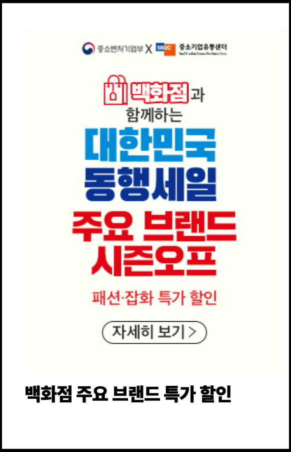 대한민국 동행세일 지난 26일부터 시작되었으며 오는 7월 12일까지 개최 예정입니다. 주최는 대한민국정부 및 여러 지방자치단체(부산, 창원, 대구, 전주, 청주, 서울)이며 주관은 중소기업유통센터가 맡았습니다. 후원은 수많은 단체들이 포함되었는데 그 중에는 한국인들에게 익숙한 기업들의 이름을 볼 수 있습니다. 대한민국 동행세일 현대·기아자동차, 삼성, 세스코, 네이버, IBK 기업은행 등이 후원을 맡게 됐습니다. 후원사 중에 자동차 기업이 포함되었다는 점에서 대한민국 동행세일 자동차 할인판매 여부에 대한 기대감을 갖게 합니다.