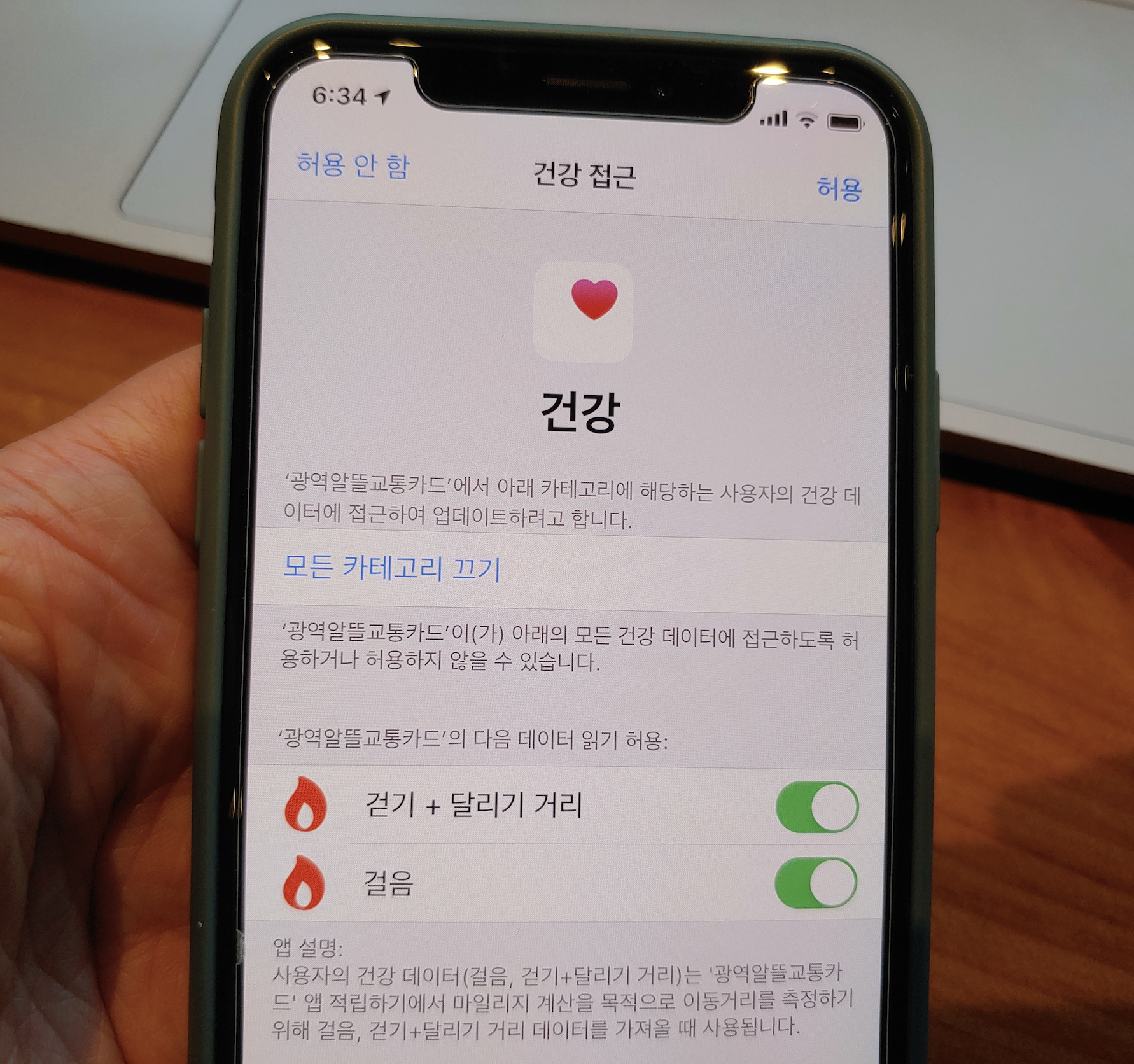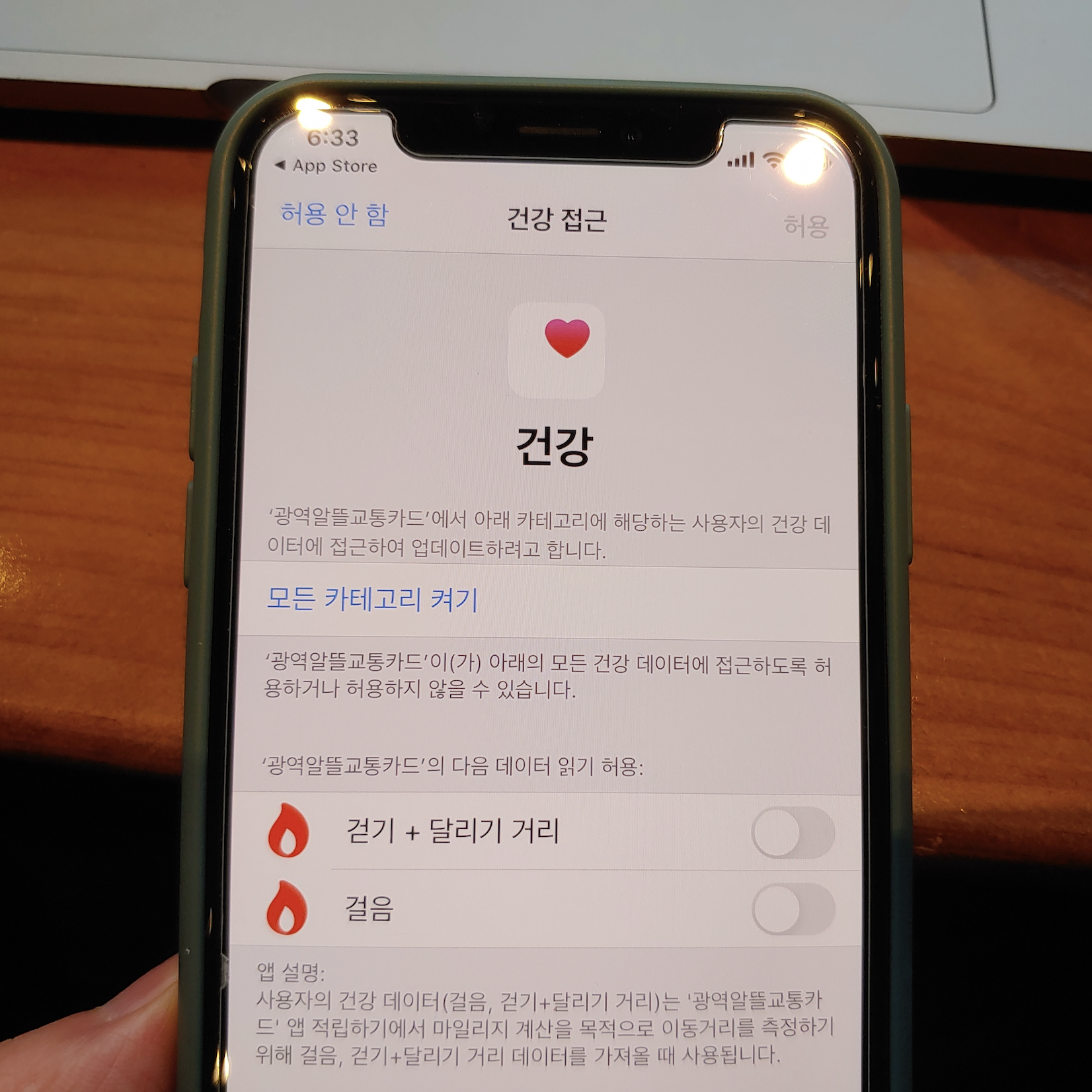 [사진 = 광역알뜰교통카드 신청 이전에 스마트폰에서 해당 앱을 사용해야 합니다. 앱스토어(iOS) 구글 플레이 스토어(안드로이드)에서 광역알뜰교통카드 검색하셔서 설치하시면 됩니다. 저 같은 아이폰 유저는 해당 앱을 설치하는 과정에서 화면에 건강 접근에 대한 부분이 뜰 겁니다. 마일리지 계산 목적으로 이동거리가 측정되기 때문에 허용하시면 됩니다. 그 이후 로그인 또는 회원가입 하시면 됩니다. (C) 앱스토어, 광역알뜰교통카드 앱]