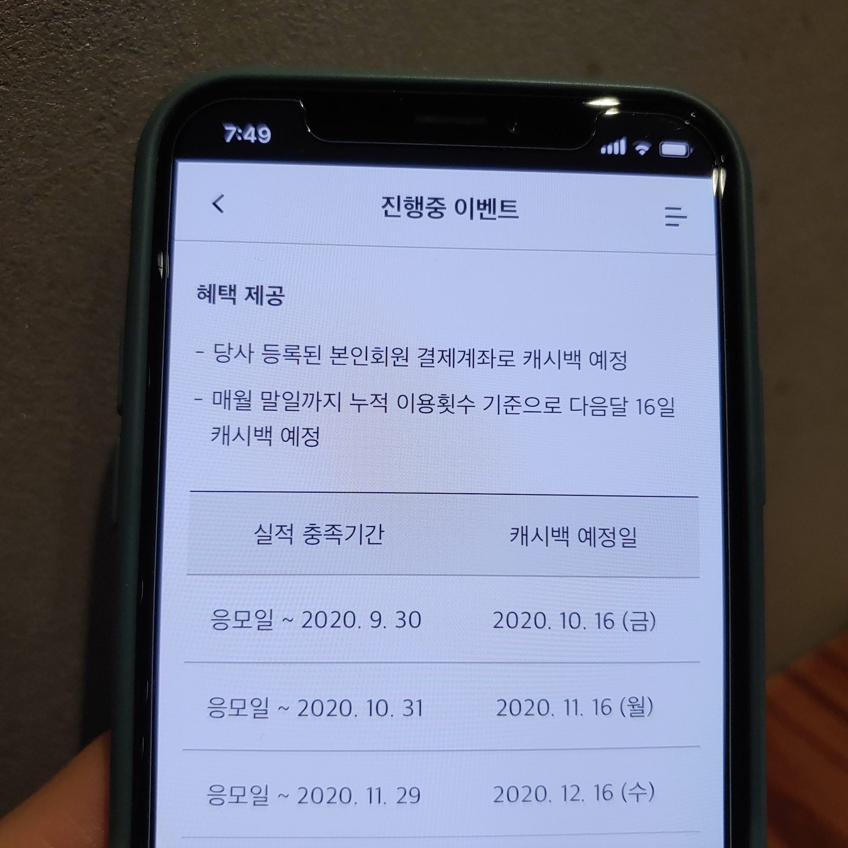 -응모일 ~ 2020년 9월 30일 실적 충족 시 10월 16일 캐시백 예정