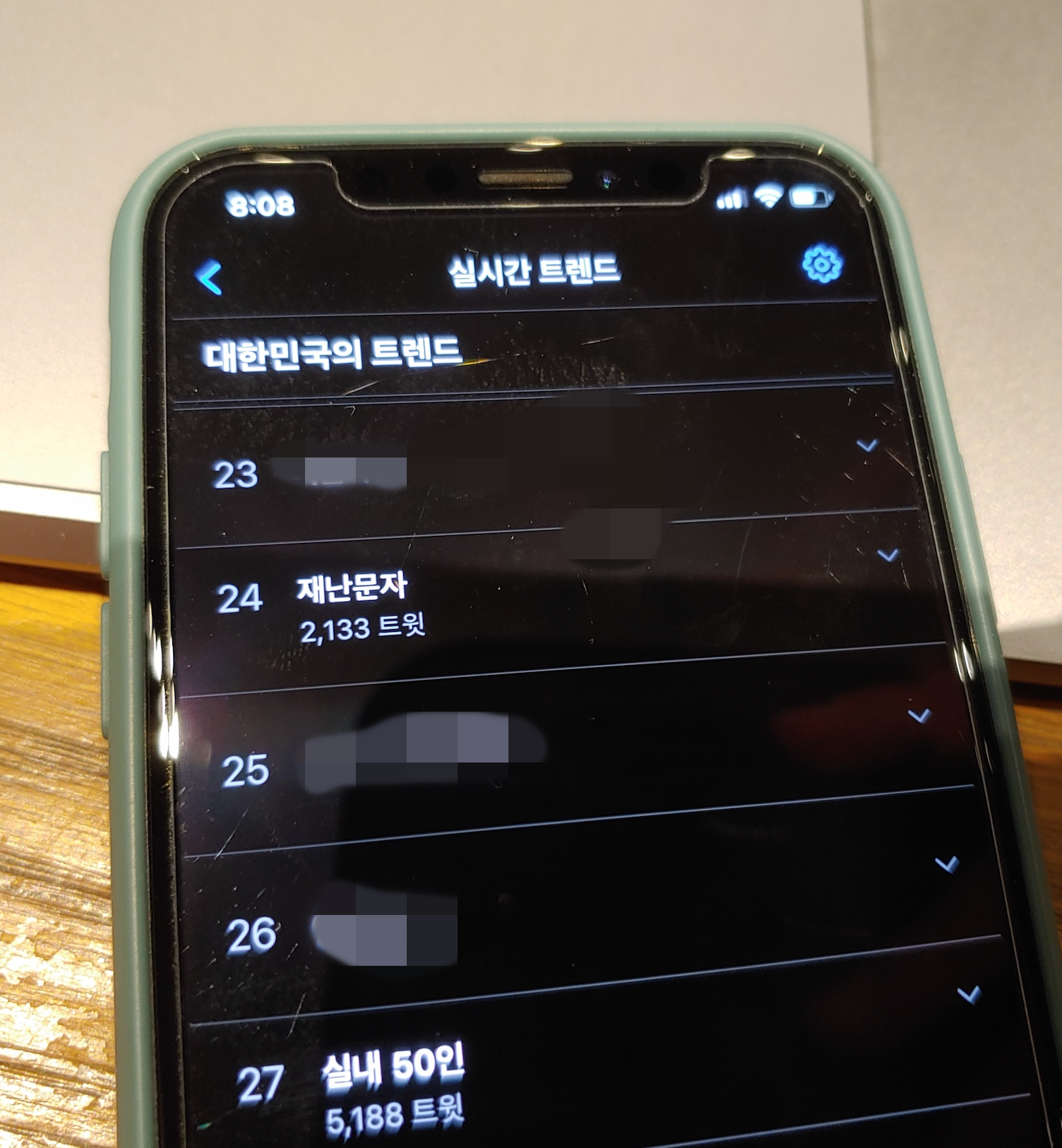 [사진 = 트위터 트렌드 중에서는 재난문자, 실내50인 단어가 떴습니다. 트위터에서 사회적 거리두기 2단계 눈길을 끄는 중입니다. 그와 더불어 오늘 스마트폰을 통해 재난문자 받은 분들이 많을 것 같습니다. (C) 트위터 앱]