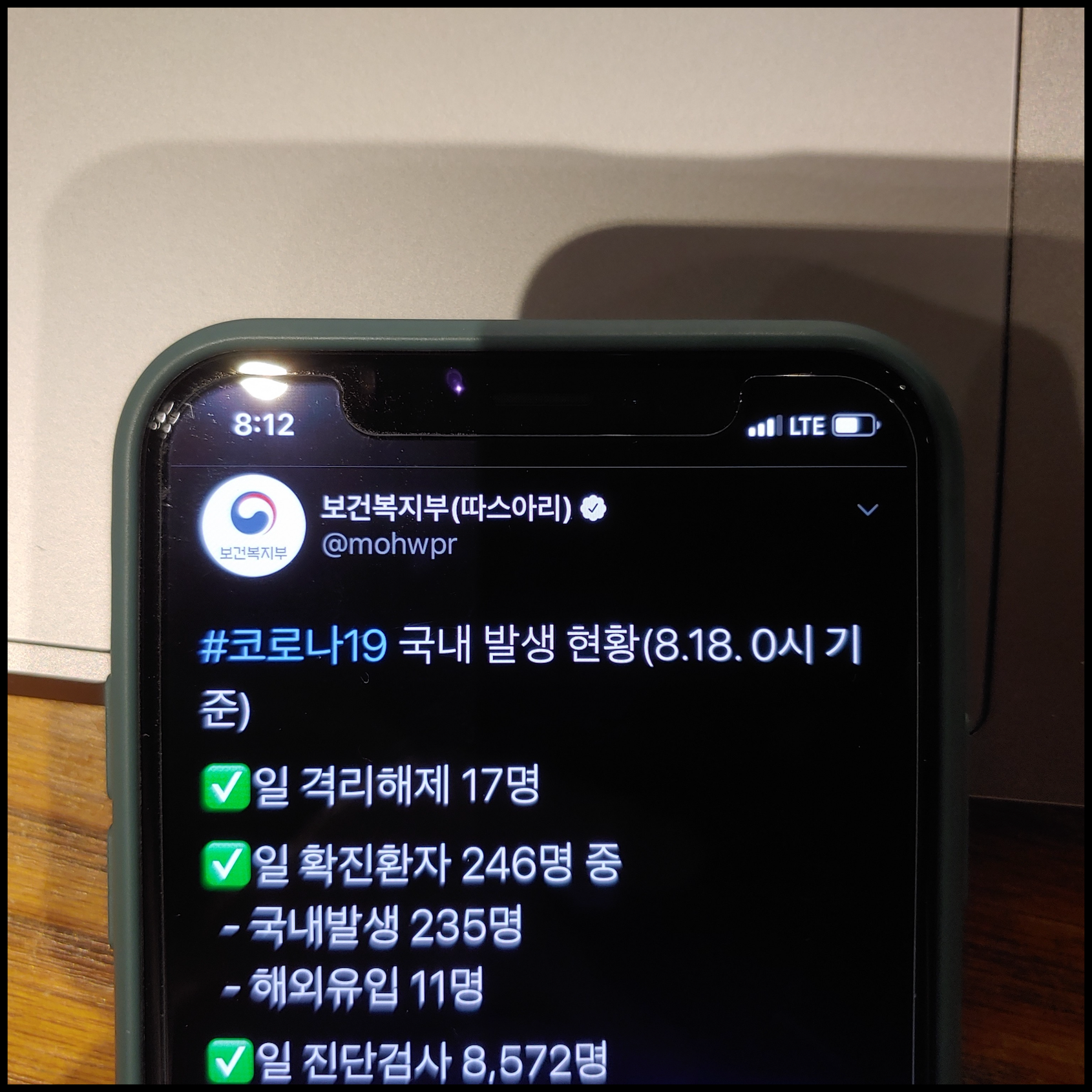 [사진 = 보건복지부 공식 트위터에 따르면 8월 18일 오전 0시 기준으로 일 확진환자 246명이라고 합니다. 그중에 국내발생은 235명이라고 합니다. 지난 8월 15일 그 이슈 때문에 코로나 국내 확진자가 한동안 많을 가능성이 있습니다. 이제는 대체공휴일 포함한 연휴가 끝났을 뿐만 아니라 코로나19 잠복 기간이 1~14일 정도 된다는 점에서 수많은 확진자가 나타나지 않을까 우려됩니다. 그럴 수록 마스크 착용을 더 철저히 하는 것과 더불어 손 소독제를 주기적으로 발라야 합니다. (C) 보건복지부 공식 트위터]