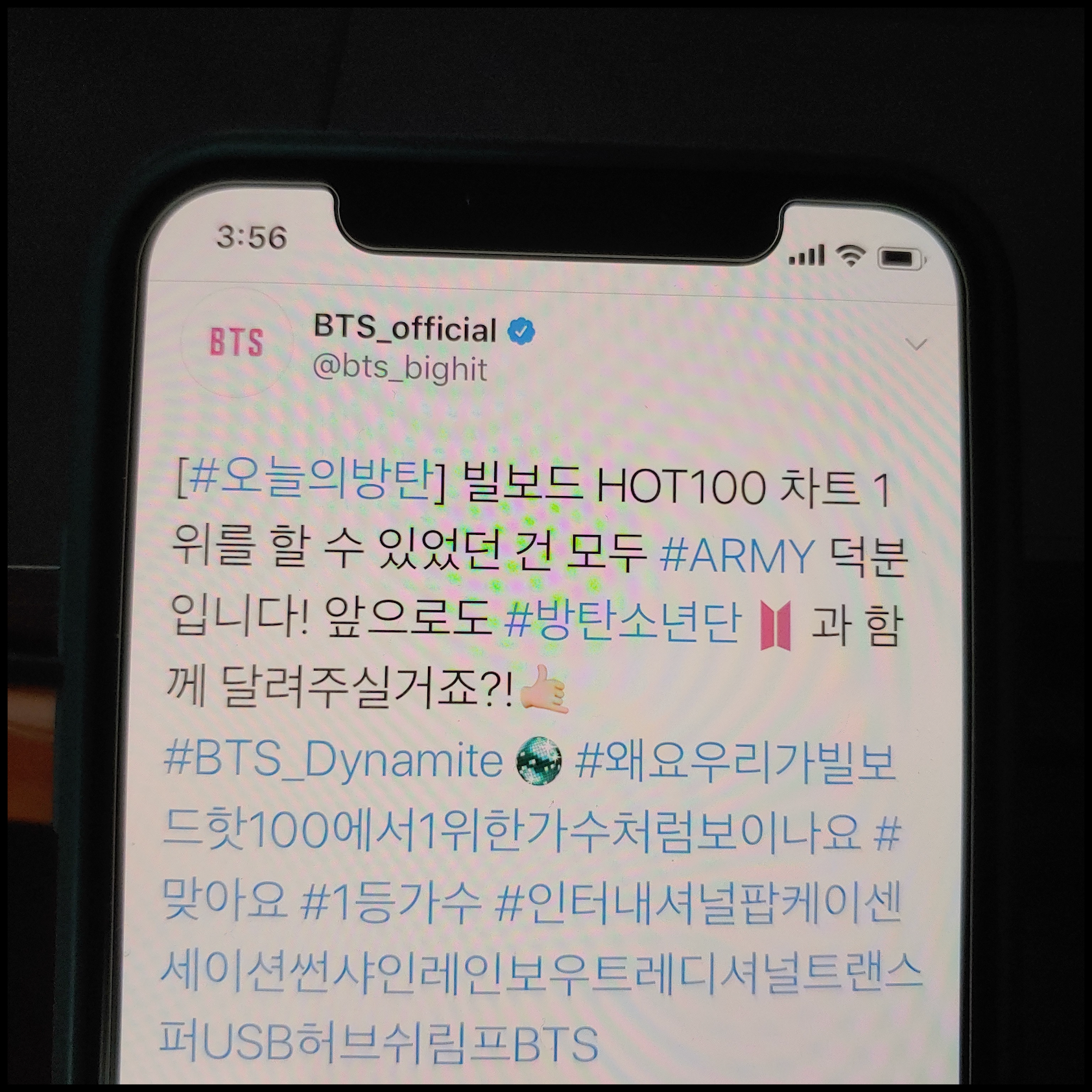 [사진 = 방탄소년단(BTS) 공식 트위터에서는 빌보드 핫100 차트 1위의 원동력을 아미(방탄소년단 팬클럽)들에게 돌렸습니다. 방탄소년단 빌보드 1위는 지난 수 년 동안 아미와의 신뢰를 구축하면서 이루어냈던 성과였습니다. 한국의 작은 기획사 소속이었던 7인조 아이돌이 빌보드를 제패하며 세계 최고의 음악 그룹으로 성장하기까지 아미의 팬덤 영향력이 엄청났습니다. 이는 2012년 싸이 강남스타일 빌보드 7주 연속 2위의 성과와는 전혀 다릅니다. 강남스타일이라는 노래가 세계적으로 많은 인기를 얻었다면 방탄소년단은 아미라는 팬덤이 있었기에 세계 무대에서 차근차근 성장했고 마침내 빌보드를 정복했습니다. (C) 방탄소년단 공식 트위터]
