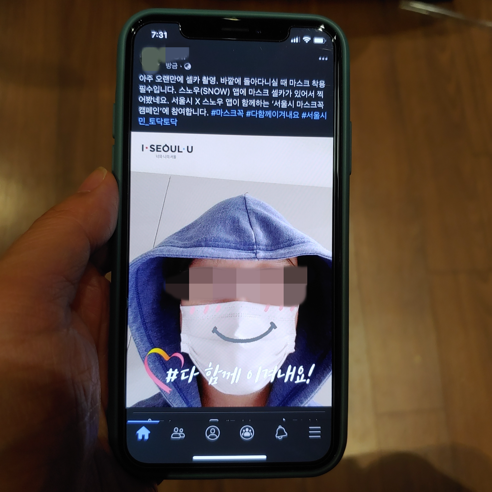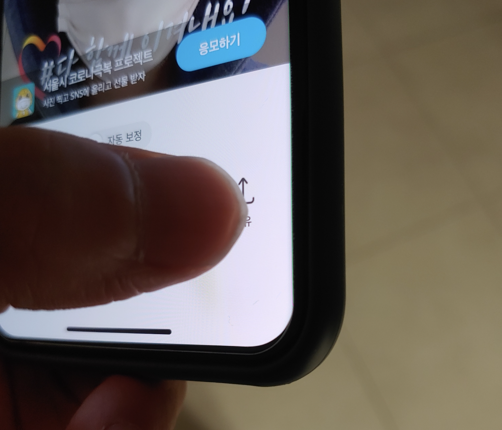 이렇게 셀카를 찍었습니다. 그랬더니 서울시 코로나 극복 프로젝트 문구가 뜨면서 서울시 마스크 꼭 캠페인 응모가 안내됐습니다.