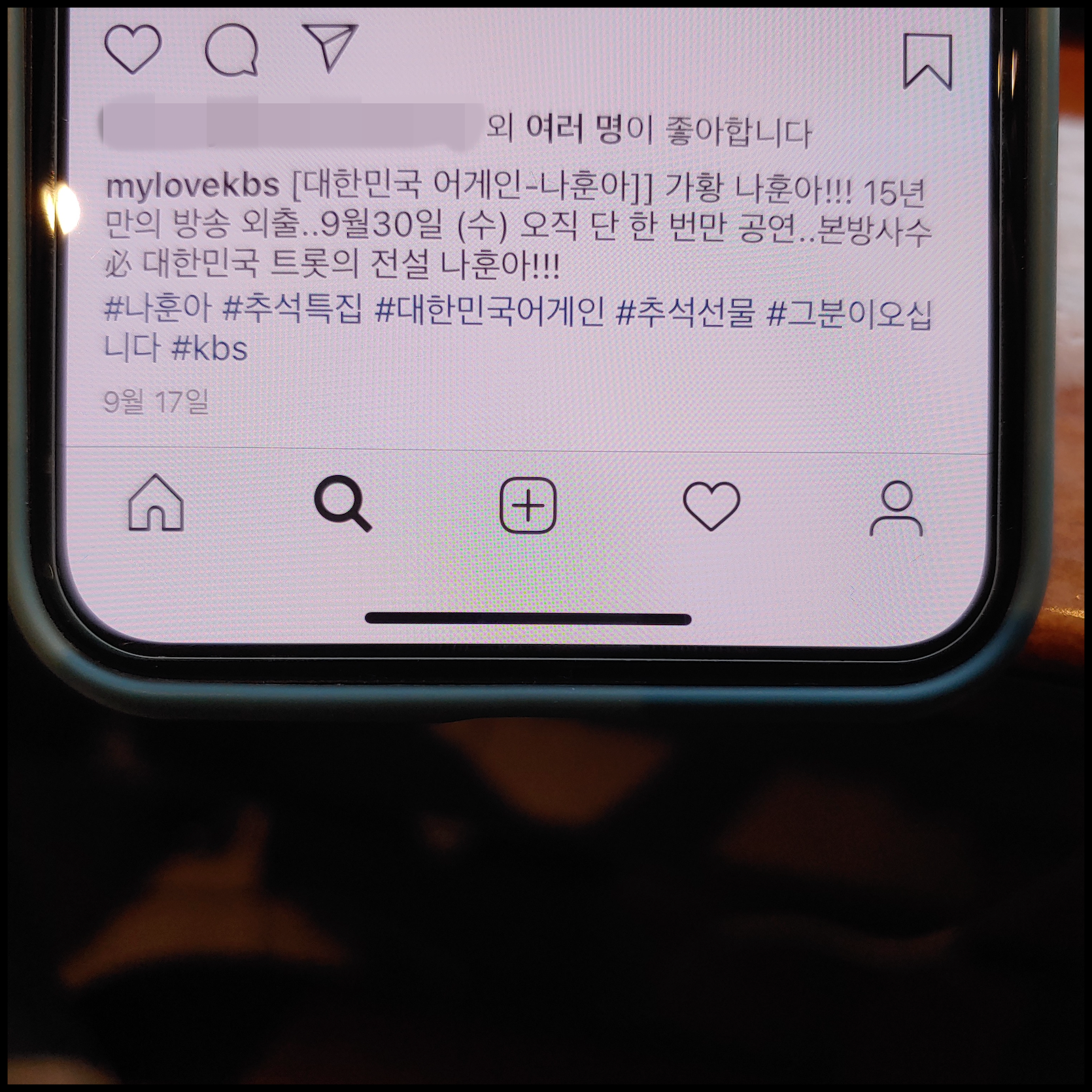 [사진 = 2020년 9월 30일 KBS2 대한민국 어게인 나훈아 방영됩니다. 사진은 저의 스마트폰 달력이며 2020년 9월 30일을 가리킵니다. (C) 나이스블루]