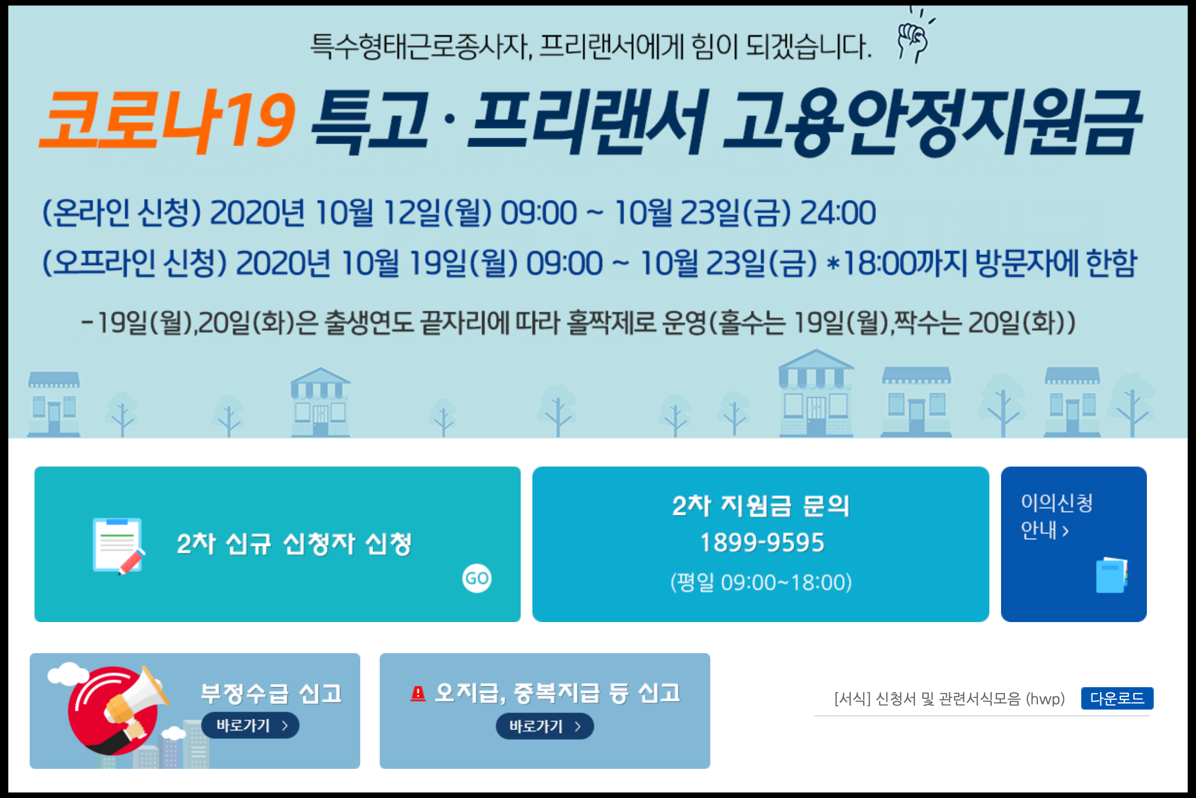 -10월 12일부터 10월 23일까지(온라인 신청 기준) 2차 긴급고용안정지원금 신청 가능