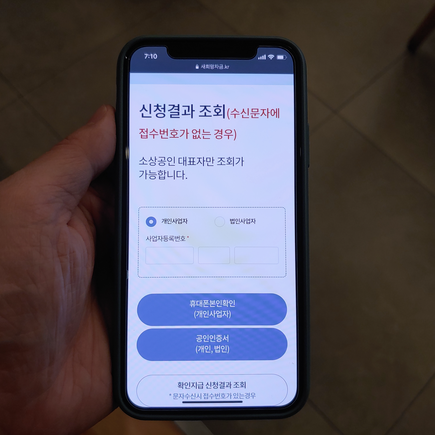 [사진 = 소상공인 새희망자금 신청결과 조회하려면 해당 홈페이지에서 개인사업자/법인사업자, 사업자등록번호 입력하셔야 합니다. (C) 소상공인 새희망자금 공식 홈페이지]