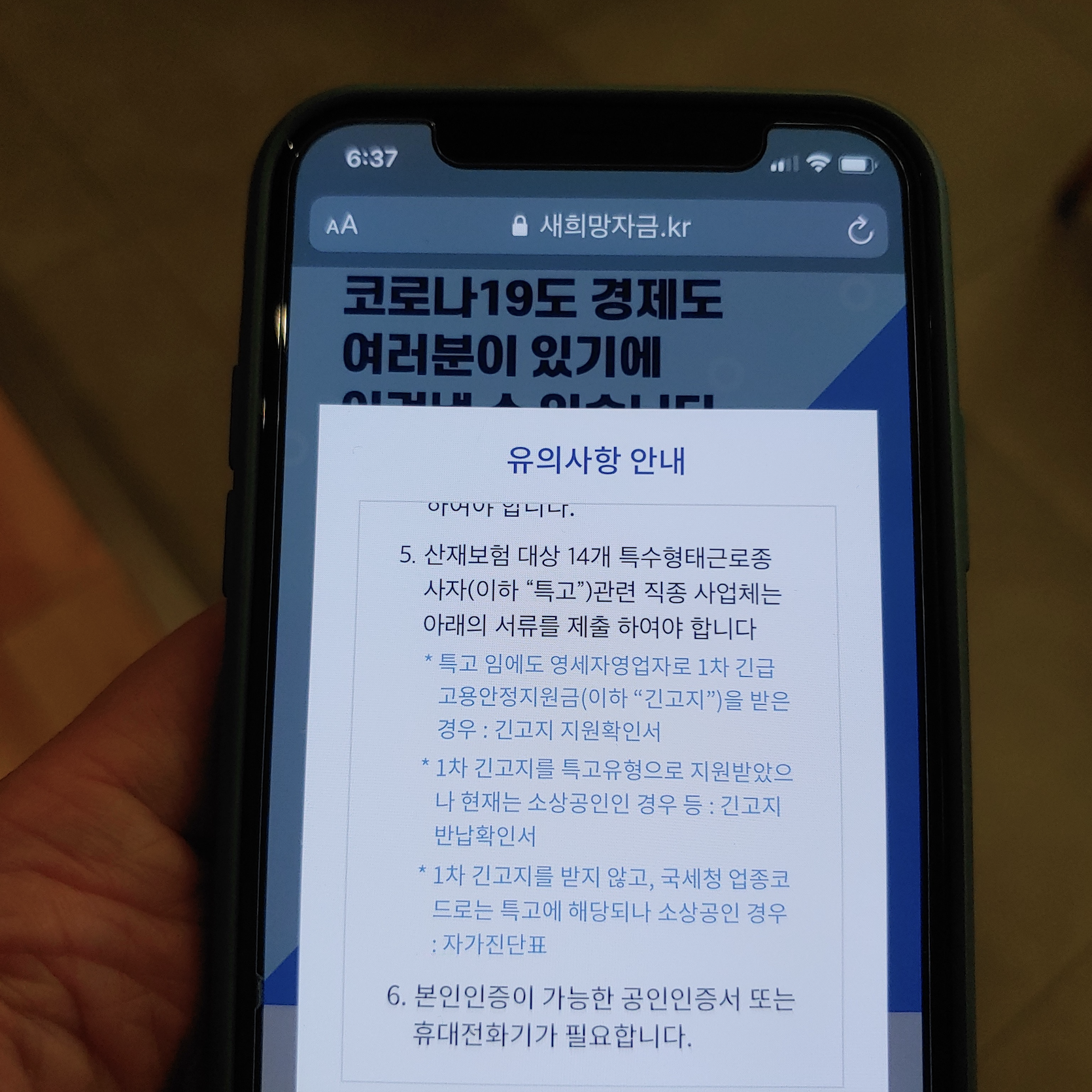 [사진 = 소상공인 새희망자금 신청 시 유의사항 이렇습니다. 간이과세자는 실제로 영업활동을 하지 않거나 지난해보다 올해 매출액 증가한 경우 환수 원칙이며, 1인당 1개 사업체만 지원되며, 대표자 가족 계좌로 지원금 지급 받고 싶다면 가족관계증명서 및 위임장 제출 필수입니다. 산재보험 대상 14개 특수형태근로종사자(방문판매원, 방문교사, 학습지교사, 택배기사, 신용카드 회원모집인 등) 관련 직종 사업체는 관련 서류를 따로 제출해야 하며, 본인인증 가능한 공인인증서 or 휴대전화기 필요하다고 합니다. (C) 소상공인 새희망자금 공식 홈페이지]