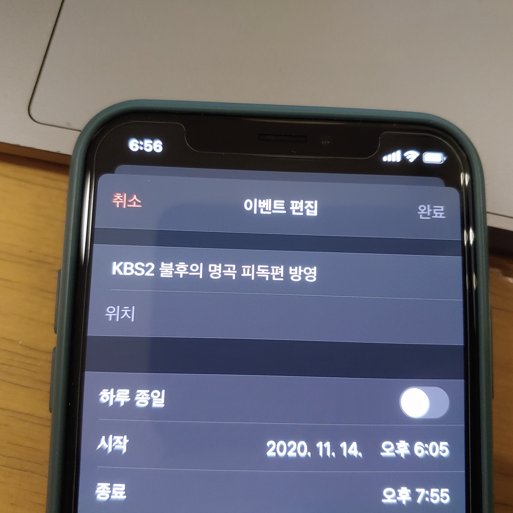 [사진 = 2020년 11월 14일 KBS2 불후의 명곡 피독편 방영 예정입니다. 사진은 저의 스마트폰 달력이며 2020년 11월 14일을 가리킵니다. (C) 나이스블루]
