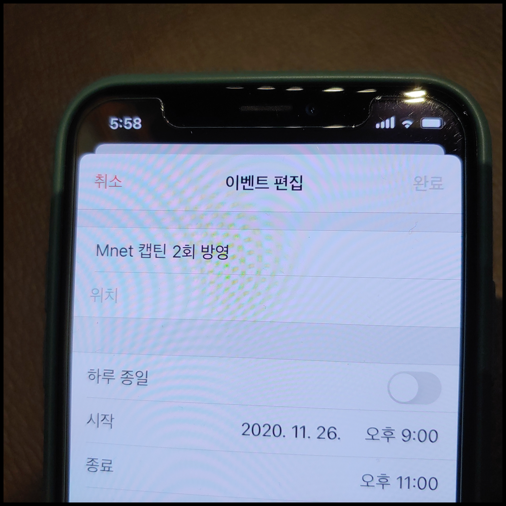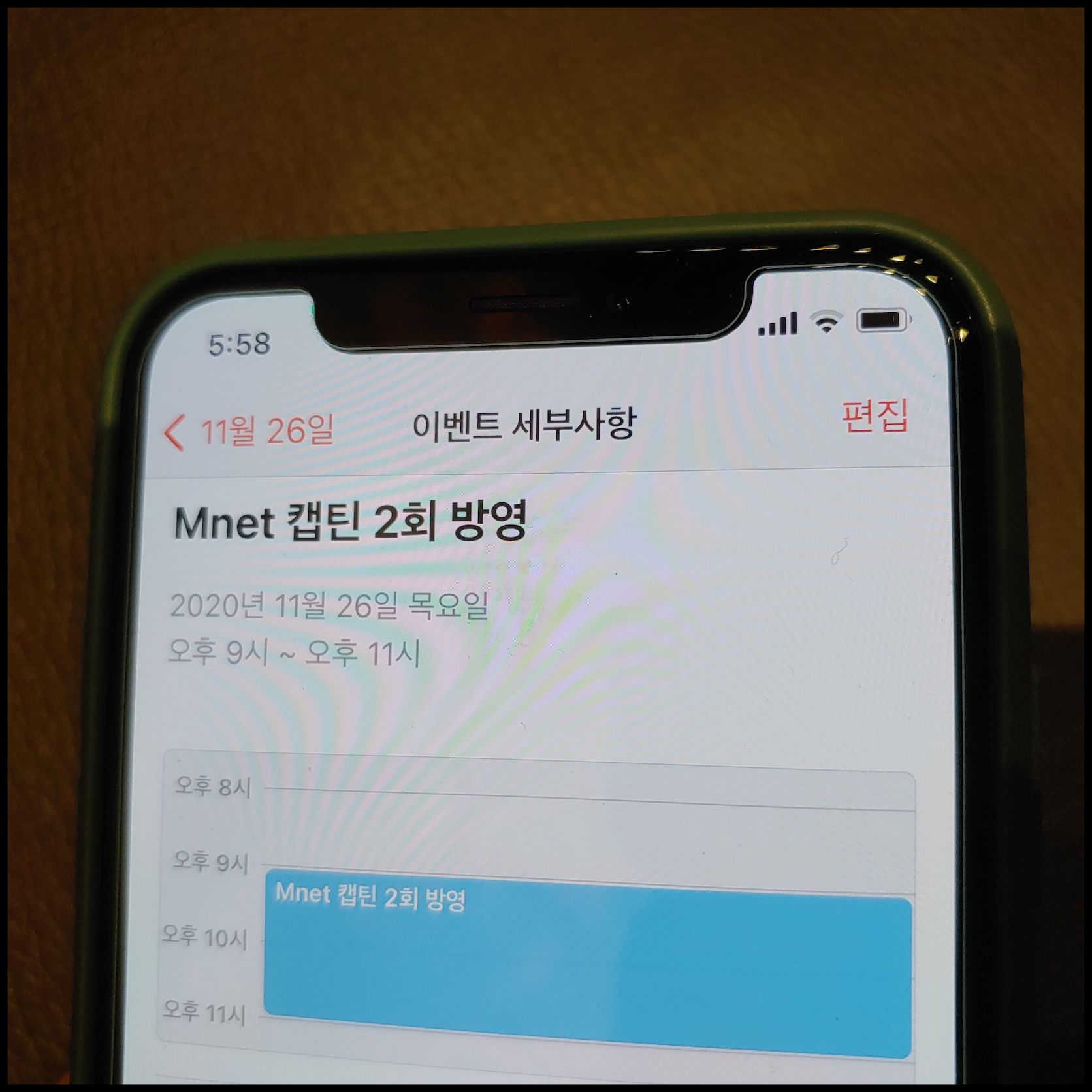 [사진 = 2020년 11월 26일 Mnet 캡틴 2회 방영 예정입니다. 사진은 저의 스마트폰 달력이며 2020년 11월 26일을 가리킵니다. (C) 나이스블루]