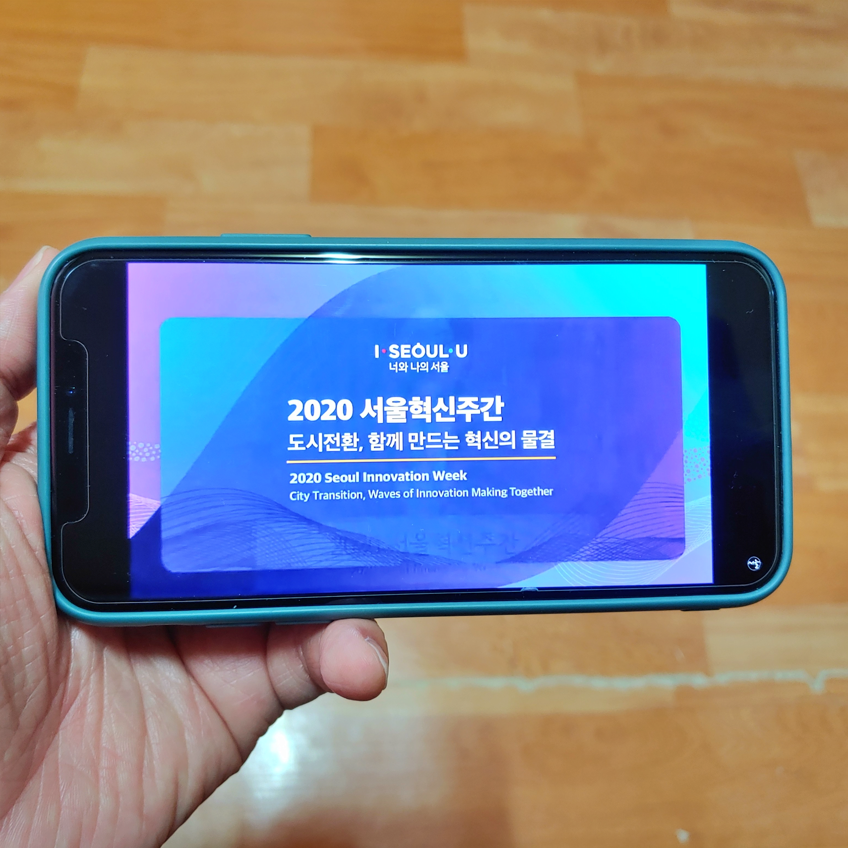 2020 서울 혁신주간 화상회의장은 방역 완료했으며 방역수칙 준수해서 진행했다는 안내가 있었습니다.