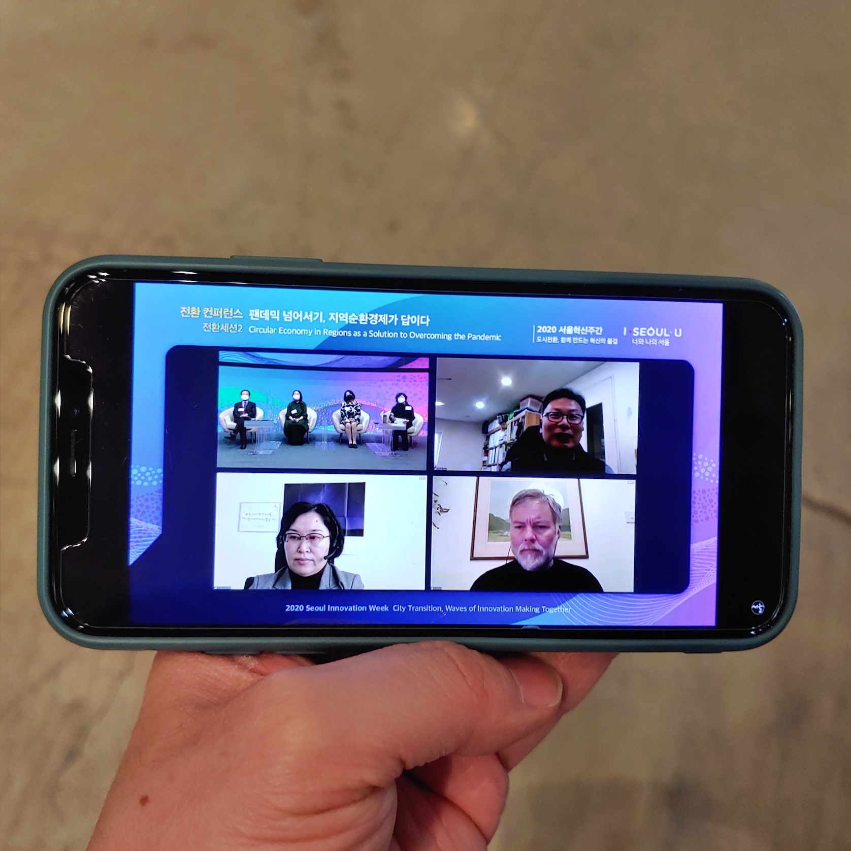 서울시 주최했던 2020 서울 혁신주간 행사가 11월 25일 수요일부터 27일 금요일까지 3일 동안 서울시청 태평홀 서울온 스튜디오에서 온라인 화상회의 형식으로 진행됐습니다. '도시전환, 함께 만드는 혁신의 물결'을 주제로 도시전환 전문가들 뿐만 아니라 시민 및 기업이 모여서 도시전환에 대한 논의를 했습니다. 전환세션 중에 하나였던 '전환을 향한 집합적 목소리 -꿈꾸고 실천하고 연결하고-'는 2018년 서울시 홍보대사로 위촉됐던 배우 박진희가 사회를 맡으며 눈길을 끌었습니다. 해외 명사들의 초청 또한 활발했습니다. 프랑스 파리, 네덜란드 암스테르담, 핀란드 헬싱키, 캐나다 몬트리올, 스페인 바르셀로나 등 여러 국적의 도시 전문가들이 모여서 토론했습니다.