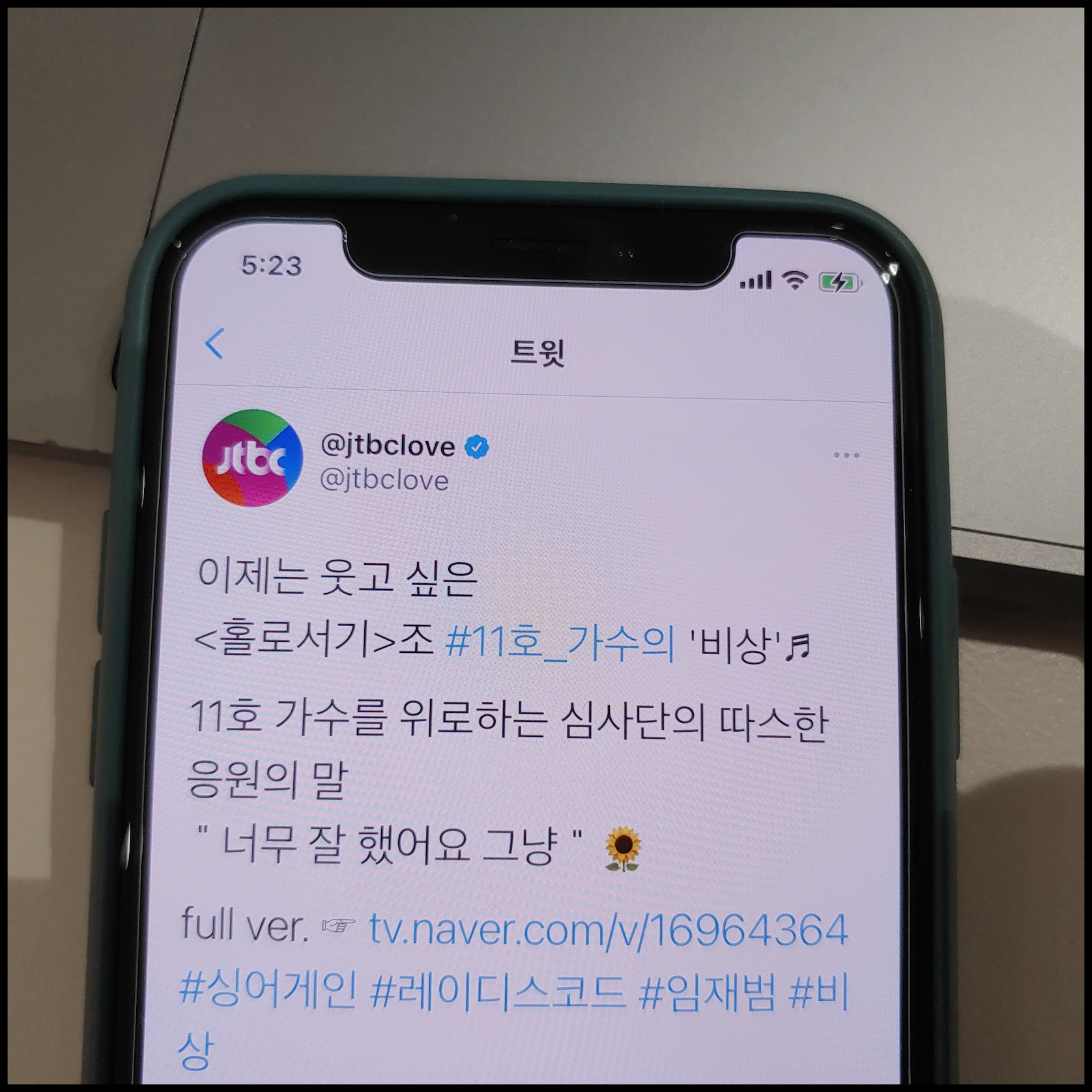 [사진 = JTBC 공식 트위터에서는 싱어게인 11호 가수 관련 게시물을 올렸습니다. 3회 마지막에 노래 경연 모습이 나왔을 정도로 프로그램 내에서 얼마나 많은 주목을 받았는지 알 수 있었습니다. (C) JTBC 공식 트위터]