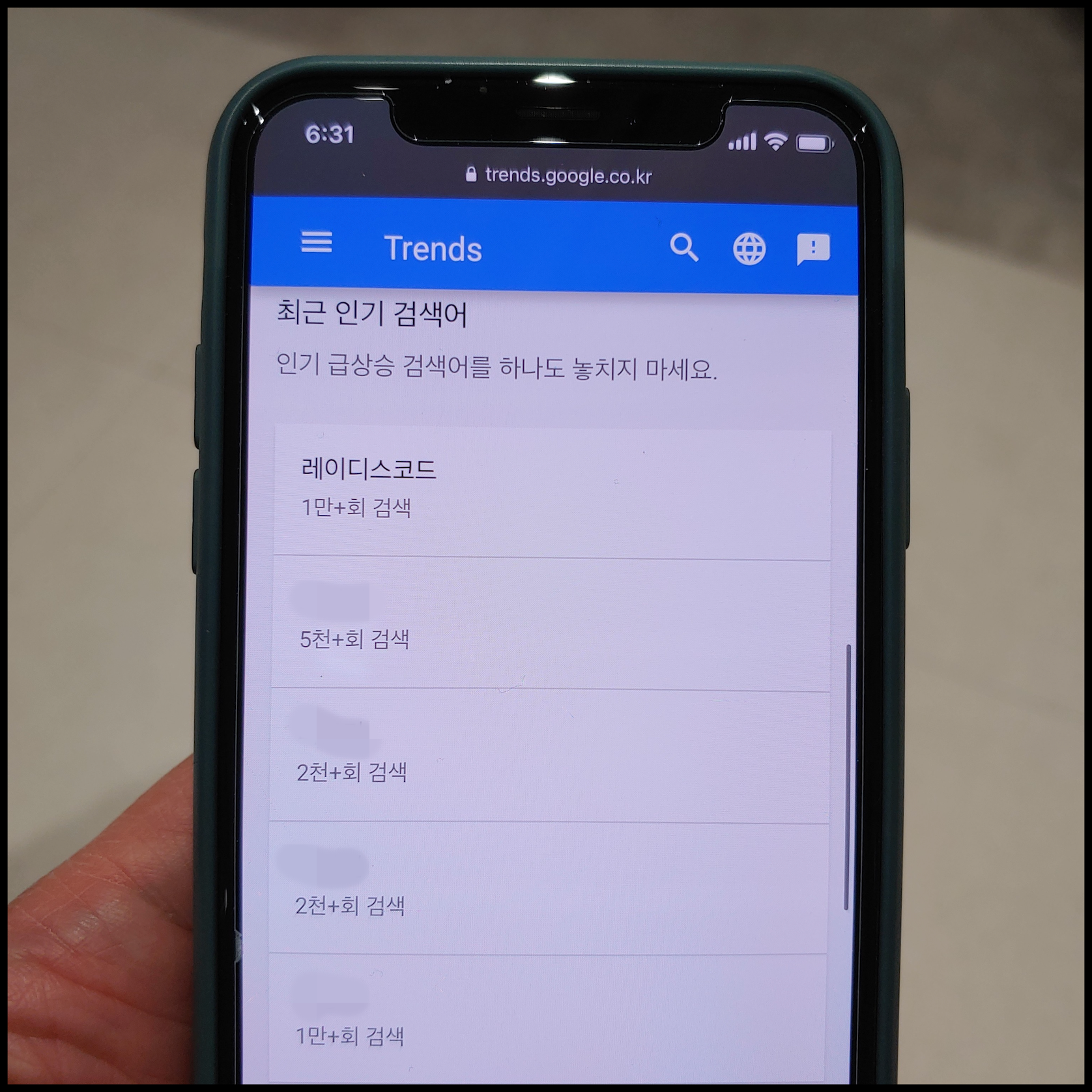 [사진 = 12월 1일 오후 6시 31분 기준으로 구글 트렌드에서는 레이디스코드가 최근 인기 검색어 최상단에 떴습니다. 이는 사람들이 레이디스코드 소정 싱어게인 11호 출연을 주목하고 있음을 알 수 있습니다. 해당 프로그램에 수많은 가수들이 출연했는데 그 중에서 소정이 3회 출연으로 많은 주목을 받았다는 것은 대중들이 여전히 레이디스코드 기억하고 있음을 알 수 있습니다. 6년 전 레이디스코드 교통사고 커다란 이슈가 되었으니 말입니다. 그 사고로 현역 걸그룹 멤버 2명이 안타깝게 세상을 떠났습니다. 다시는 한국 연예계에서 있어서는 안 될 교통사고였습니다. (C) 구글 트렌드]