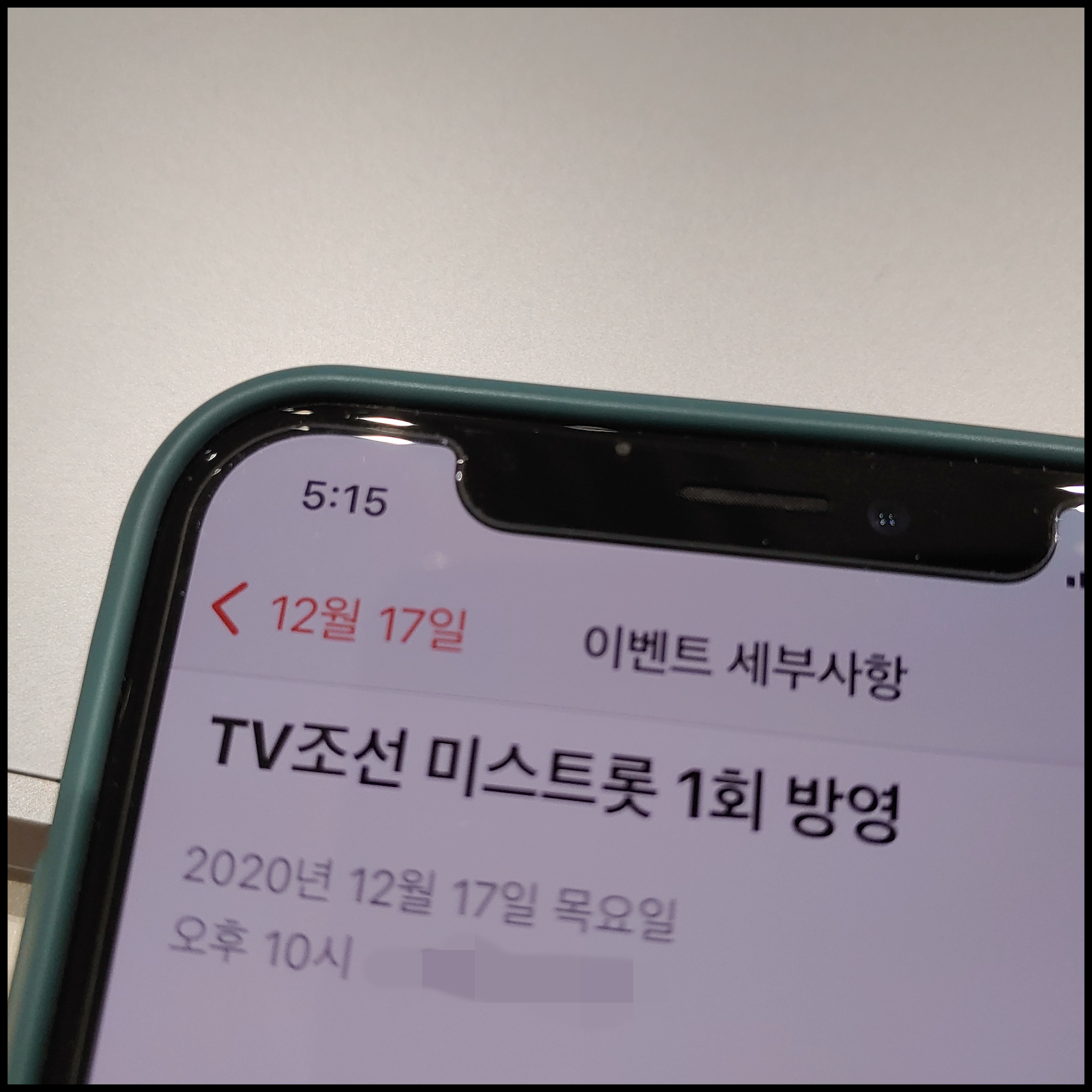 [사진 = 2020년 12월 17일 오후 10시부터 TV조선 미스트롯 1회 방영됩니다. 사진은 저의 스마트폰 달력이며 2020년 12월 17일을 가리킵니다. (C) 나이스블루]