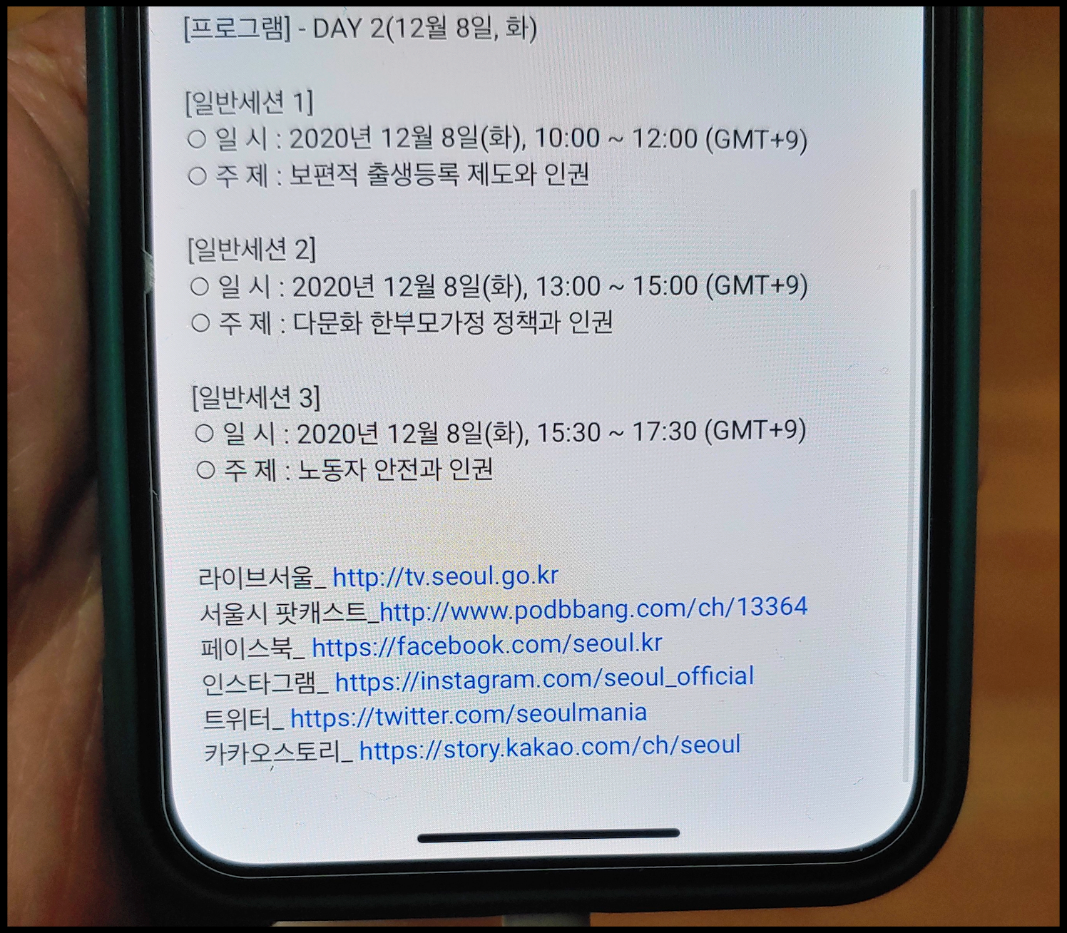 2020 서울 인권 콘퍼런스 행사가 최근 개최됐습니다. 제가 2년 전에는 이 행사가 오프라인에서 진행되는 모습을 서울시청에서 직접 봤습니다. 그런데 이번 행사는 오프라인이 아닌 온라인을 통해 접했습니다. 코로나19에 따른 사회적 거리두기 2/2.5단계(7일까지 2단계, 8일부터 2.5단계) 격상으로 관중이 입장할 수 없기 때문에 온라인으로 진행되는 모습을 봤습니다. 2년 사이에 많은 것이 바뀌었음을 실감합니다. 2020 서울 인권 콘퍼런스 글을 작성하는 저의 얼굴에도 마스크를 착용한 상황입니다. 2년 전에는 마스크를 쓸 일이 없었지만 지금은 그렇지 않습니다. 코로나19 시대에 인권 또한 달라졌습니다. 지금까지 누구도 예상하지 못한 상황이 펼쳐지면서 인권의 취약한 부분을 되돌아보는 것이 이 행사의 목적이 아닐까 싶습니다.