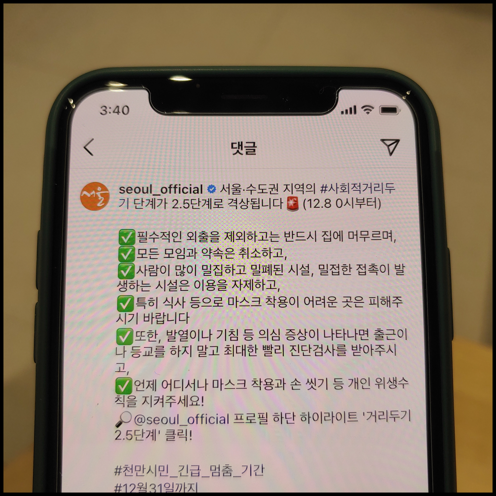 아울러 지하철 포함한 대중교통 운행은 30% 이상 감축했습니다. 시내버스는 12월 5일, 지하철은 12월 8일부터 시행됐습니다. 최근에 지하철 탑승했을 때 평소보다 사람이 줄었다고 느껴지는데 많은 사람들이 외출을 자제하고 있음을 실감합니다. 재택근무 동참하는 사람이 늘어난 것으로 보입니다.