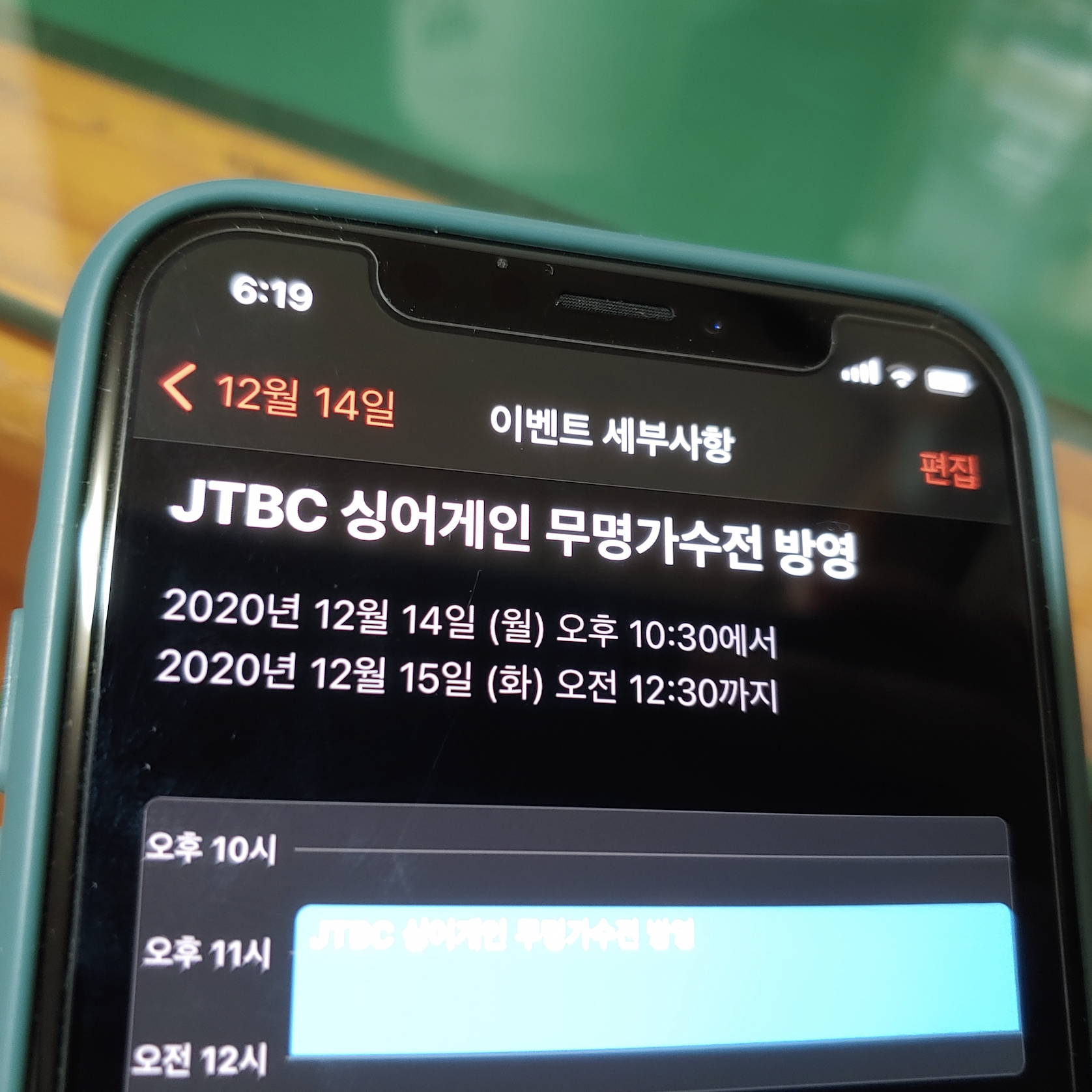 [사진 = 2020년 12월 14일 JTBC 싱어게인 무명가수전 방영 예정입니다. 사진은 저의 스마트폰 달력이며 2020년 12월 14일을 가리킵니다. (C) 나이스블루]