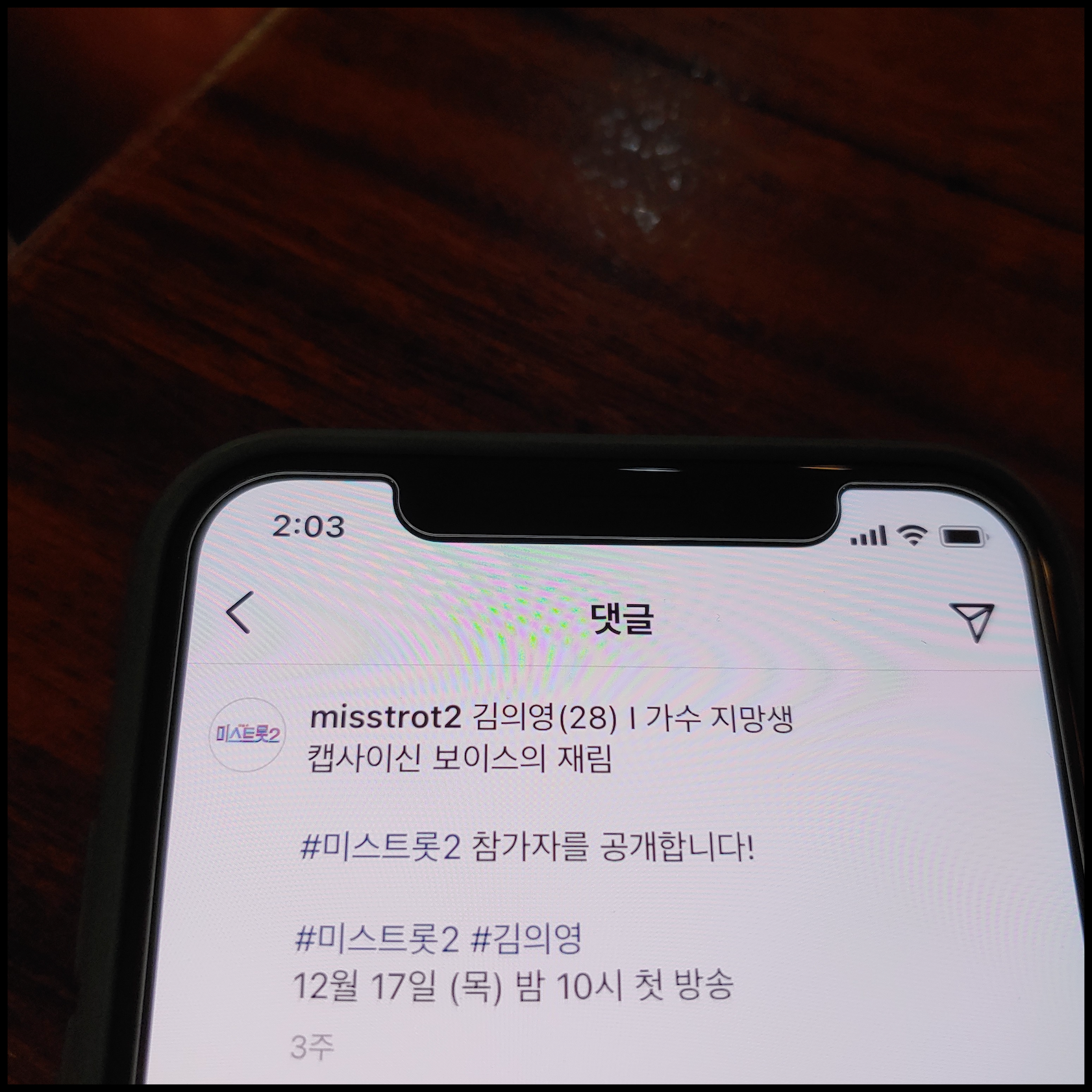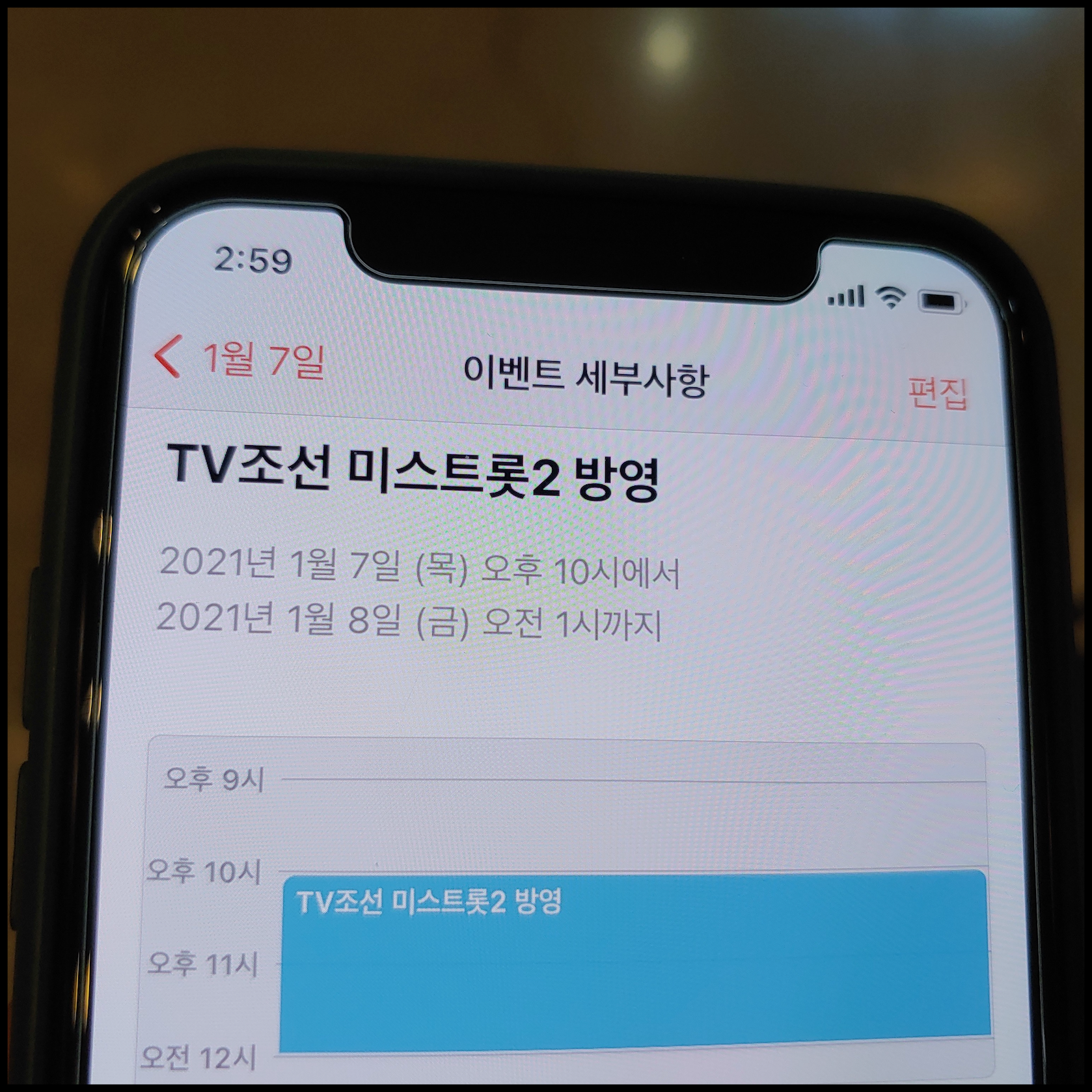 [사진 = 2021년 1월 7일 TV조선 미스트롯2 4회 방영됩니다. 사진은 저의 스마트폰 달력이며 2021년 1월 7일을 가리킵니다. (C) 나이스블루]