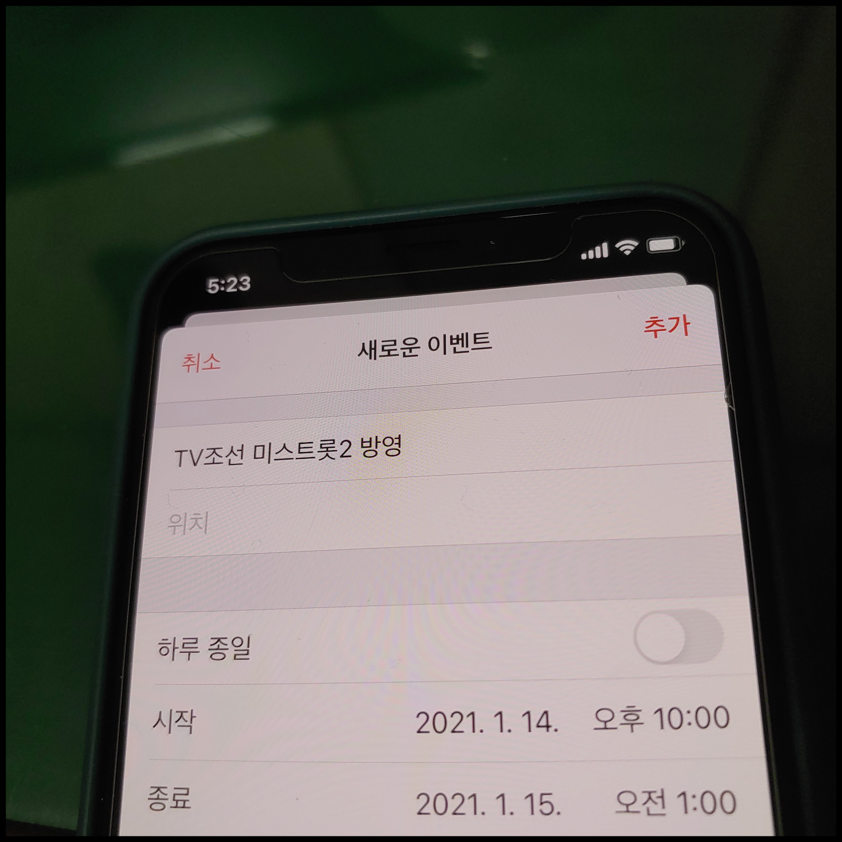 [사진 = 2021년 1월 14일 TV조선 미스트롯2 방영 예정입니다. 다음 경연은 본선 2라운드 1:1 데스매치입니다. 사진은 저의 스마트폰 달력이며 2021년 1월 14일을 가리킵니다. (C) 나이스블루]