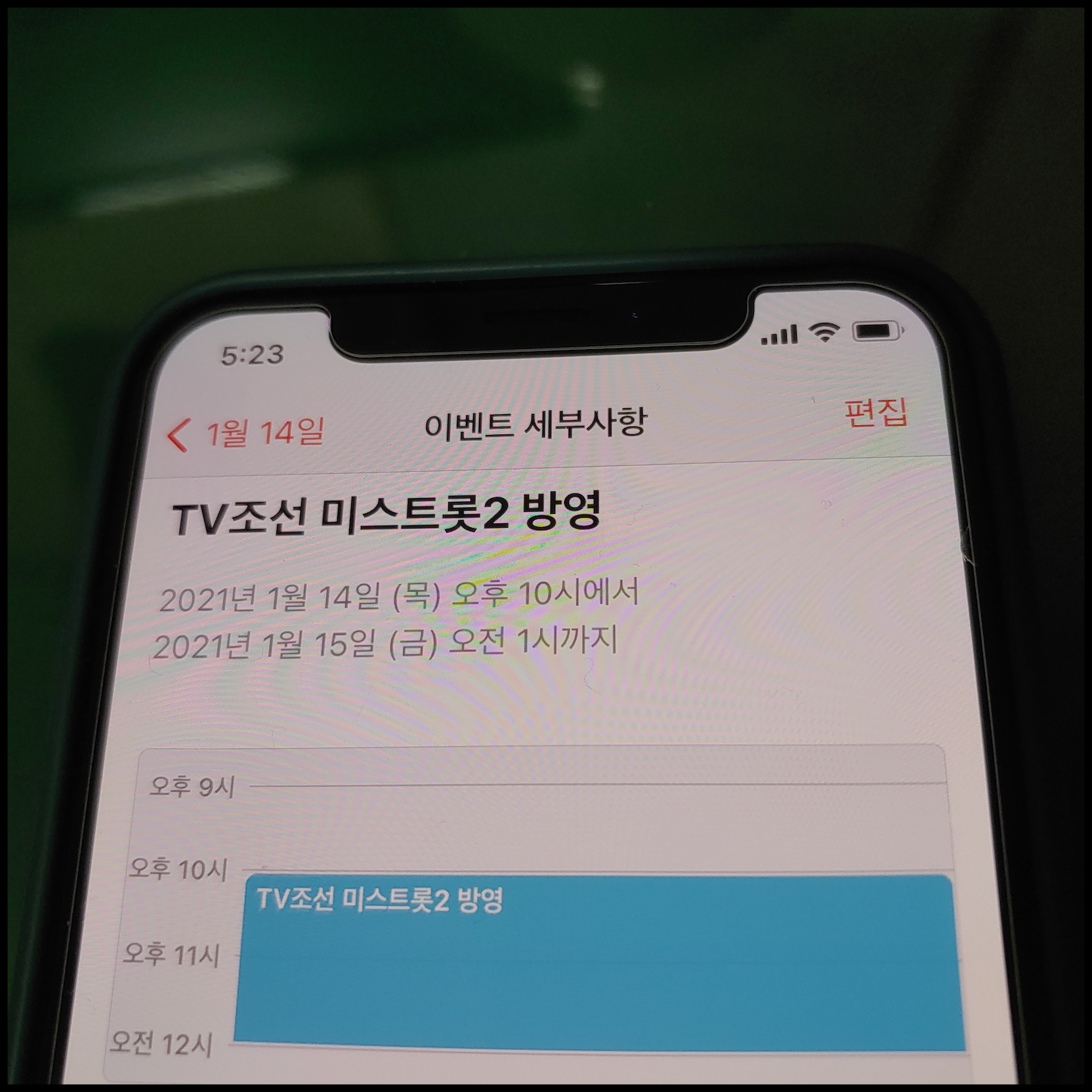 [사진 = 2021년 1월 14일 TV조선 미스트롯2 방영 예정입니다. 다음 경연은 본선 2라운드 1:1 데스매치입니다. 사진은 저의 스마트폰 달력이며 2021년 1월 14일을 가리킵니다. (C) 나이스블루]