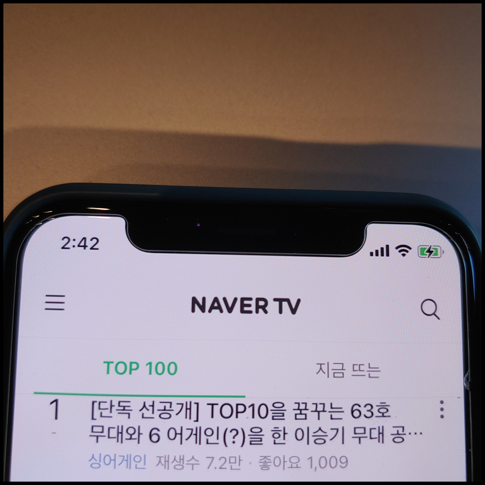 [사진 = 1월 18일 오후 네이버TV TOP 100 1위는 싱어게인 63호 가수 이무진 TOP10 경연전 영상 및 MC 이승기 6어게인(?) 받았던 선공개 영상입니다. 이번에 선보였던 이무진 노래 바다에 누워(원곡 : 높은음자리) 입니다. 그동안 싱어게인 이무진 어떤 노래를 부를지 기다렸던 분들이 많으셨을 텐데 드디어 1월 18일 방영분에 공개됩니다. 네이버TV에서 이무진 영상이 선공개로 나왔다는 것은 그만큼 그의 화제성이 얼마나 높은지 알 수 있습니다. 지난 1월 11일 네이버TV에서 싱어게인 선공개 영상이 올라왔을 때는 TOP10 결정전 조 추첨이었는데 일주일 지난 이번에는 이무진 선공개 영상이 나왔습니다. 아울러 이승기가 신곡을 잠깐 불렀던 모습도 선공개 영상을 통해 공개됐습니다. (C) 네이버TV 앱]