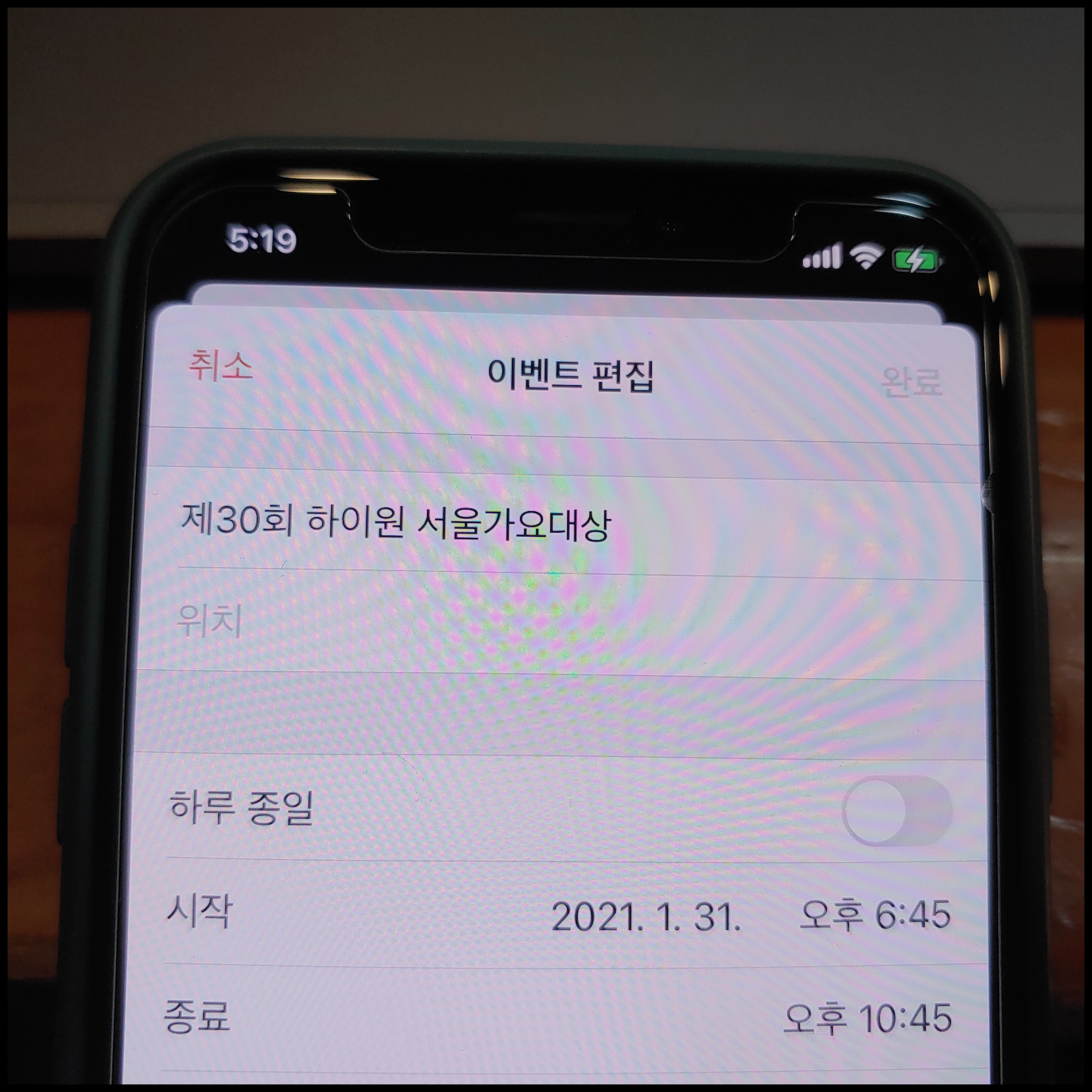 [사진 = 2021년 1월 31일 서울가요대상 개최됩니다. 시상식 시작 및 종료 시간 같은 경우 KBSw 편성표 통해서 참고했습니다. 사진은 저의 스마트폰 달력이며 2021년 1월 31일을 가리킵니다. (C) 나이스블루]