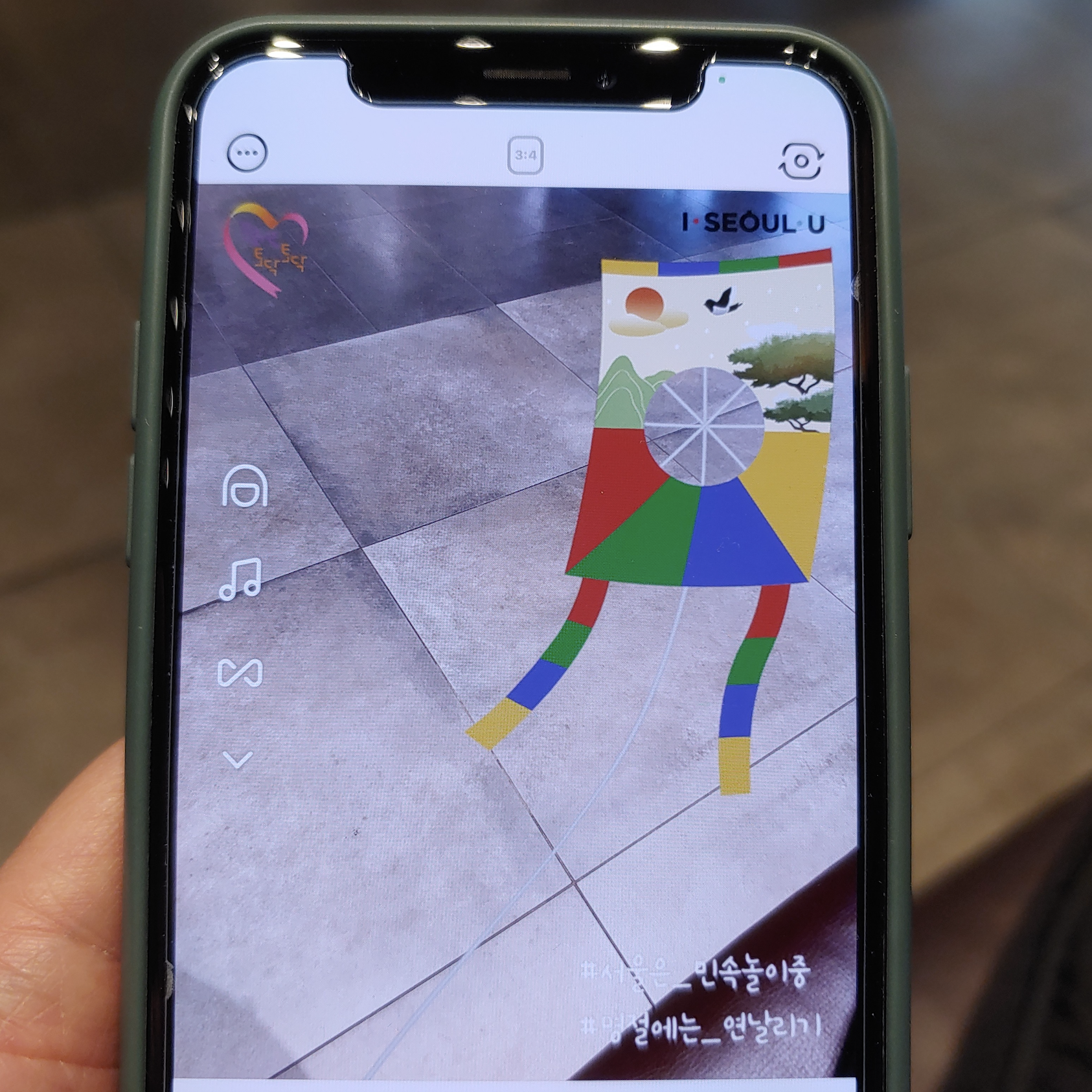 이렇게 선택할 경우 윷놀이 이미지가 스마트폰 화면에 나옵니다. 손가락으로 화면을 탭하면 연날리기 이미지가 뜹니다. 이러한 이미지를 활용해서 민속놀이 촬영 사진 촬영하셔서 인스타그램 및 페이스북 공유하시면 됩니다. 앞에서 언급했던 필수태그와 함께 말입니다.