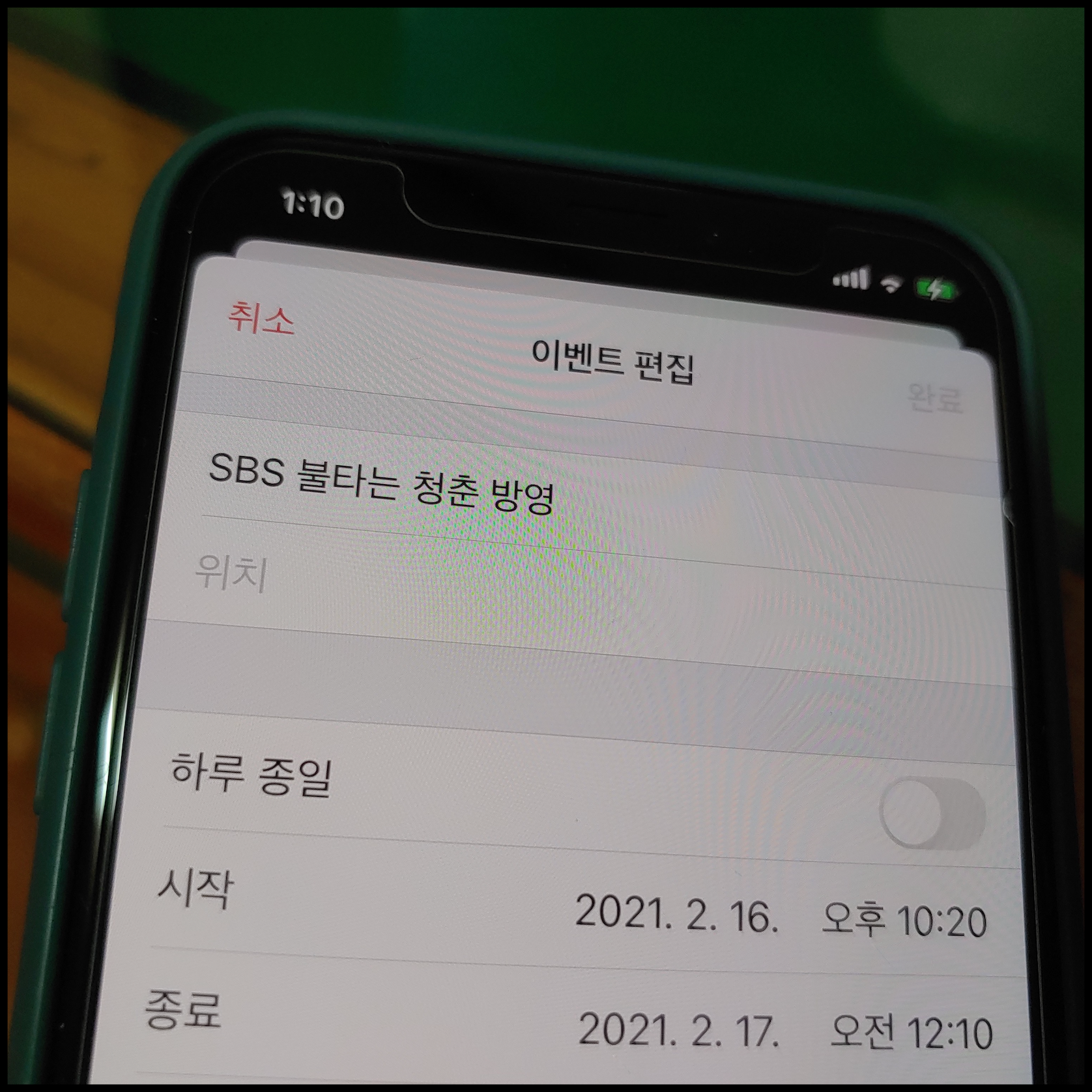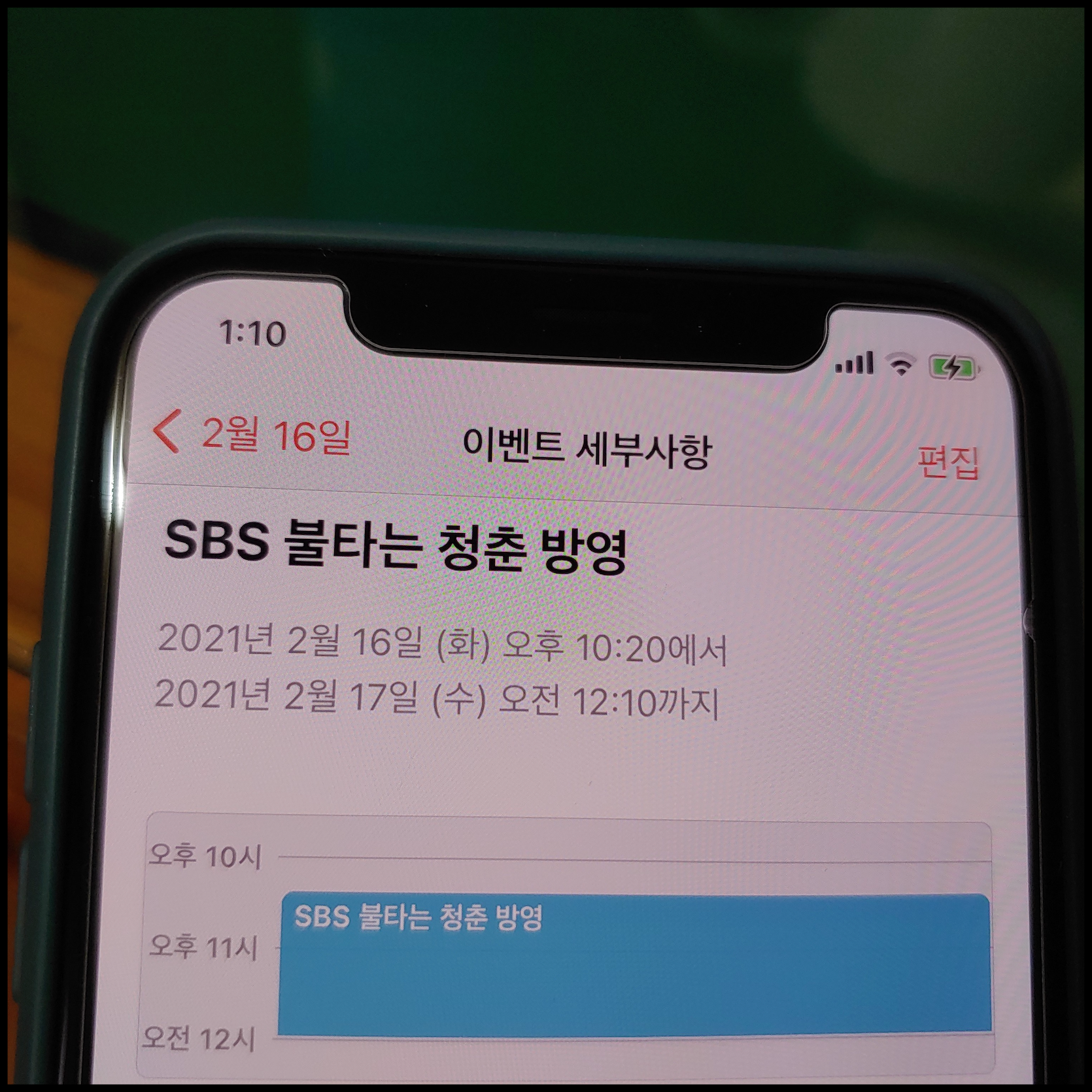 [사진 = 2021년 2월 16일 SBS 불타는 청춘 방영 예정입니다. 사진은 저의 스마트폰 달력이며 2021년 2월 16일을 가리킵니다. (C) 나이스블루]