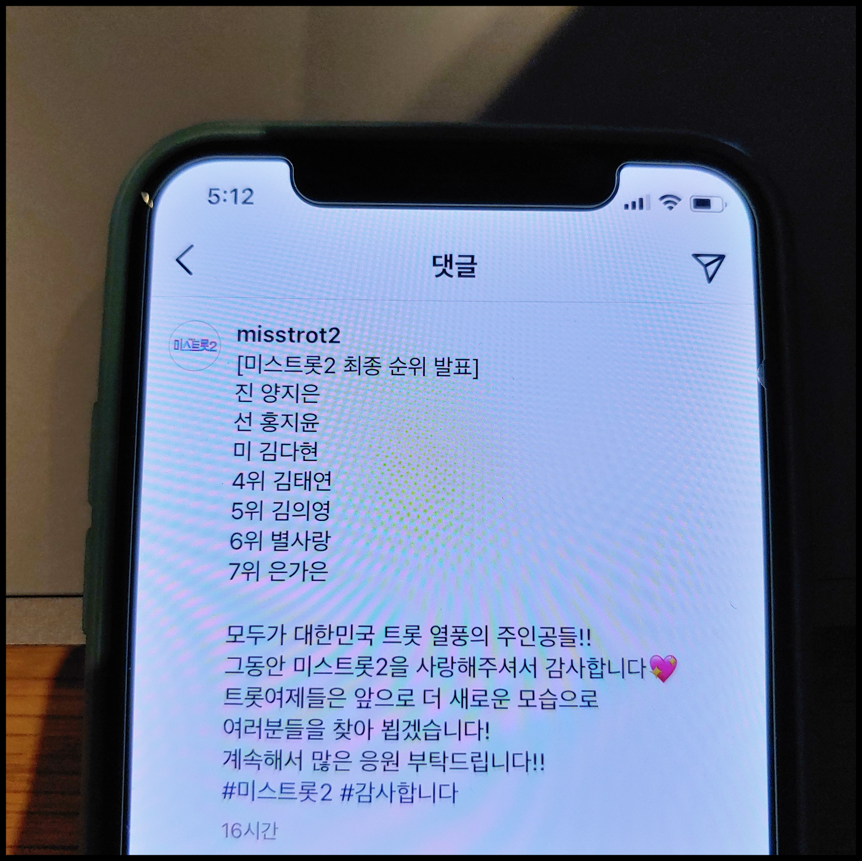 [사진 = 미스트롯2 공식 인스타그램에서는 이 프로그램 참가자들의 최종 순위를 발표했습니다. 진 양지은, 선 홍지윤, 미 김다현, 4위 김태연, 5위 김의영, 6위 별사랑, 7위 은가은 확정을 알렸습니다. 이 프로그램은 시청률 30% 돌파하며 국민적으로 뜨거운 관심을 끌었습니다. 양지은 뿐만 아니라 수많은 참가자들의 이름이 전국적으로 알려지면서 향후 이들의 연예계 활약이 기대되는 상황입니다. 특히 미스트롯2 양지은 진 달성 통해서 향후 국민적 신드롬을 불러 일으킬 것으로 기대되는 음악인이 배출된 것은 이 프로그램의 의미있는 성과 중에 하나 입니다. (C) TV조선 미스트롯2 공식 인스타그램]