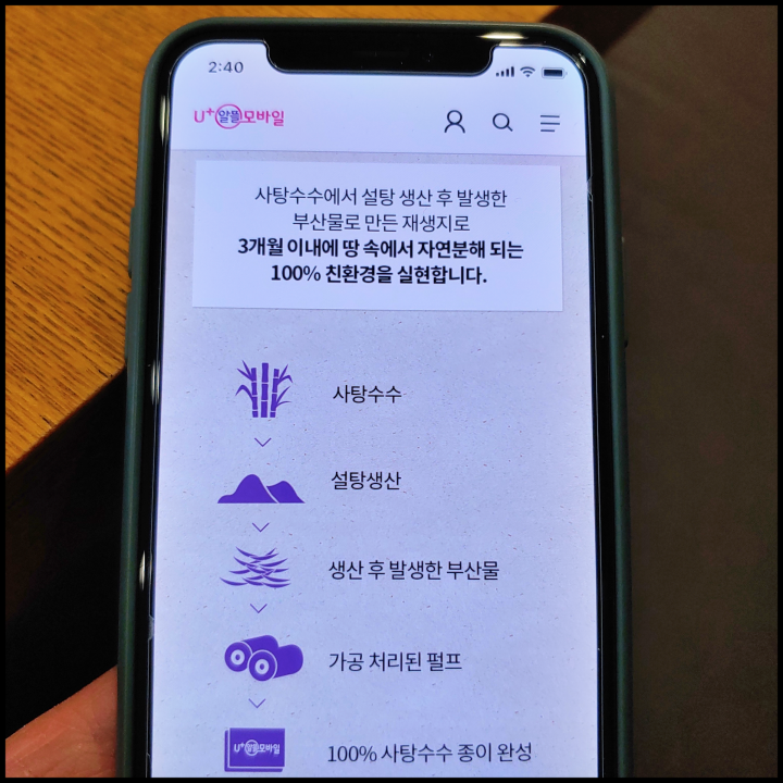 '여기서 사탕수수가 왜 나오는 걸까?'라고 궁금하게 느끼는 분이 많을 듯 합니다. 사탕수수 통해서 설탕이 만들어지는 것은 많은 사람들이 알고 있습니다. 생산 이후에 발생했던 부산물이 펄프로 가공 처리되어 100% 사탕수수 종이로 완성됩니다. 그 재생지는 3개월 이내에 땅 속에서 분해되는 100% 친환경이 실현되기 때문에 친환경 배송 패키지가 맞습니다. 그야말로 환경을 생각하는 착한 기업임을 알 수 있습니다. 해당 통신사에 대하여 알뜰폰 통신사 추천 할 수 밖에 없는 이유는 네이버페이 포인트가 10% 적립되는 착한 요금제와 더불어 친환경 배송 패키지가 마련되었기 때문입니다.
