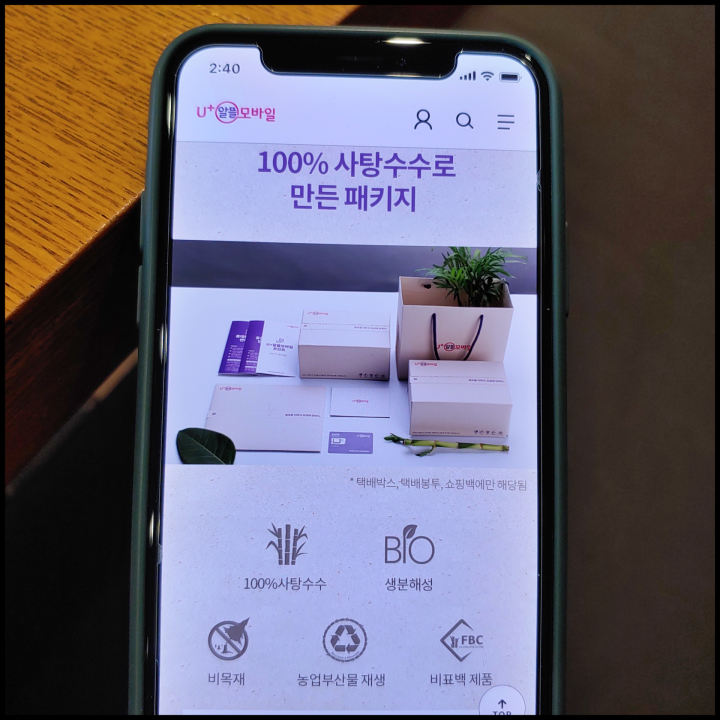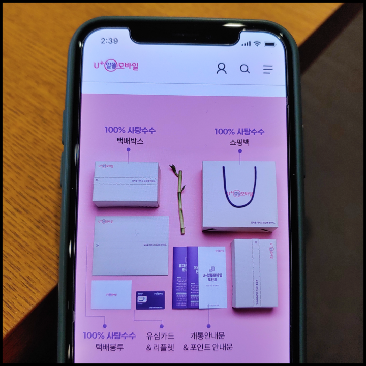 알고보니 이곳은 친환경 패키지가 눈길을 끕니다. 100% 사탕수수로 만든 패키지(택배박스, 택배봉투, 쇼핑백에만 해당)로 유심을 받아 볼 수 있습니다.