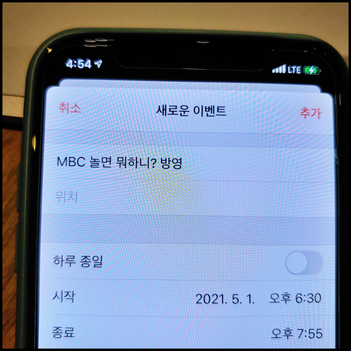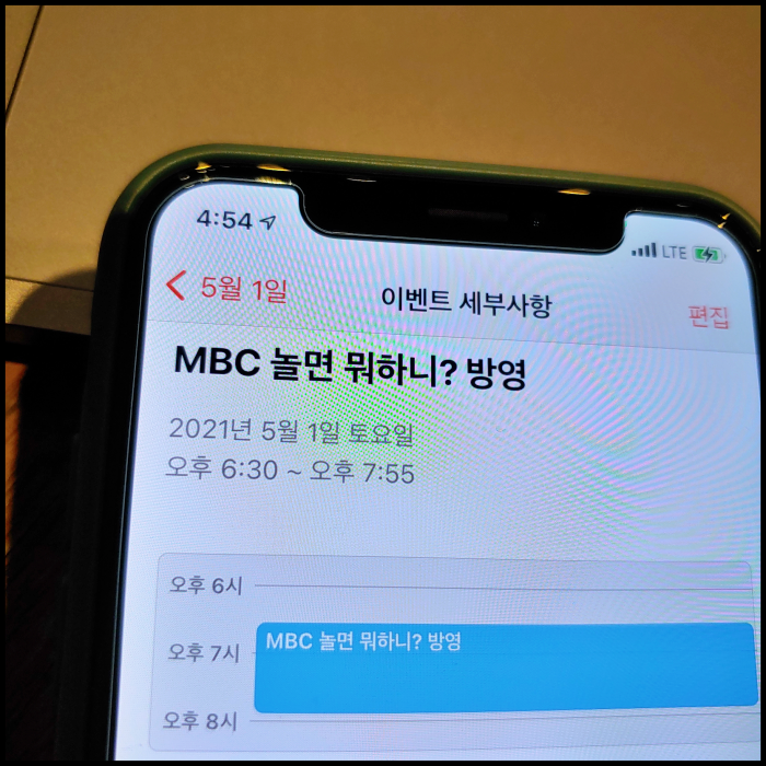 [사진 = 2021년 5월 1일 MBC 놀면뭐하니 방영됐습니다. 사진은 저의 스마트폰 달력이며 2021년 5월 1일을 가리킵니다. (C) 나이스블루]