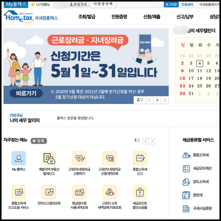 (3) 홈택스 공식 홈페이지