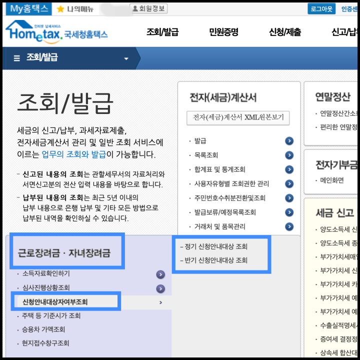 근로 장려금 지급 대상자 확인 방법