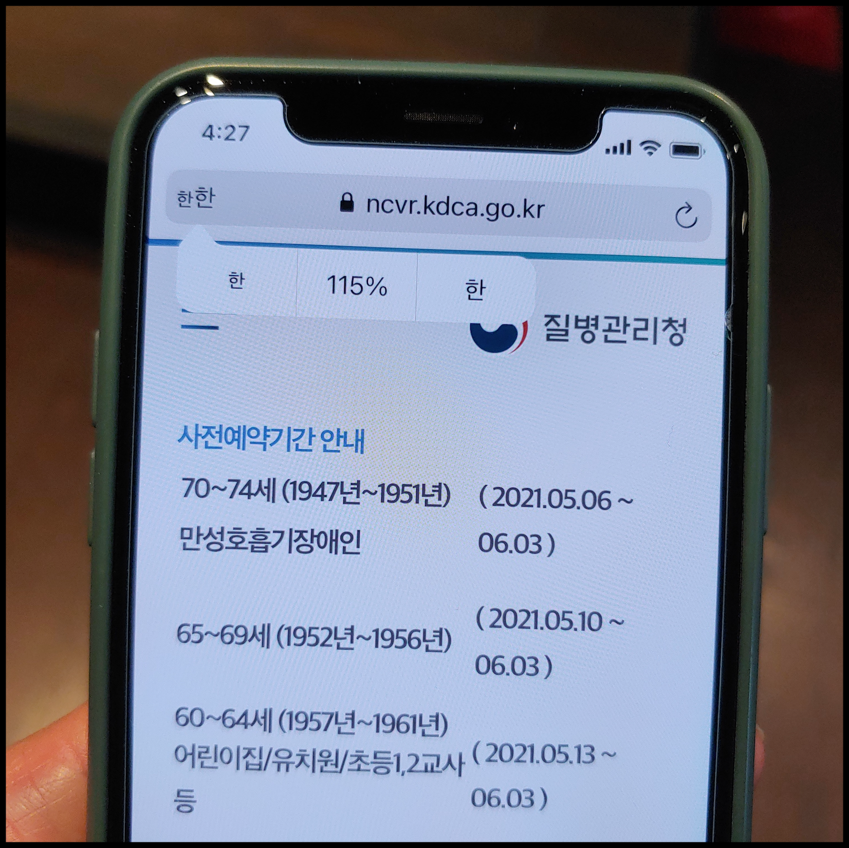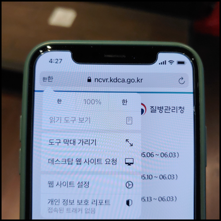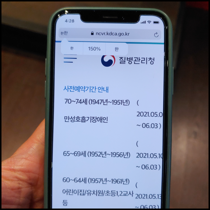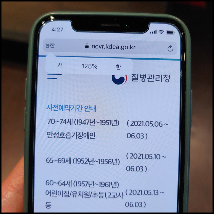 아이폰 같은 경우 사파리(Safari) 상단에 글자 확대 가능한 기능이 있습니다. 제가 해당 기능을 언급하는 이유는 65세 이상 어르신 분들 중에 눈이 잘 보이지 않아서 화면에 나타나는 글자 읽는데 어려움을 겪는 분들이 있을 듯 합니다. 65세 이상 백신 접종 신청 하실 때 혹시나 화면에 표출된 글자가 작게 나타난다면 해당 기능 도움이 될 듯 합니다.