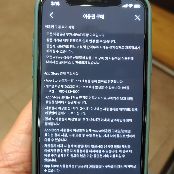 웨이브 이용권 가격 아이폰 같은 경우 PC에서 이용할 때에 비해 비싸게 나오는 점 참고하시기 바랍니다. 아이폰에서 웨이브 어플 실행 시 말입니다. 이러한 가격 차이는 아이폰 이용하는 저로서도 예상치 못한 부분입니다. 그 이유가 무엇인지 알 수 없으나 아이폰은 앱스토어에서 웨이브 어플을 설치하는 형태이기 때문에 아마도 그 부분과 연관성이 있지 않을까 싶은 개인적인 추측을 해봅니다. 만약 아이폰 웨이브 이용 시에는 요금제마다 가격 어떻게 나오는지 반드시 참고하시기 바랍니다.