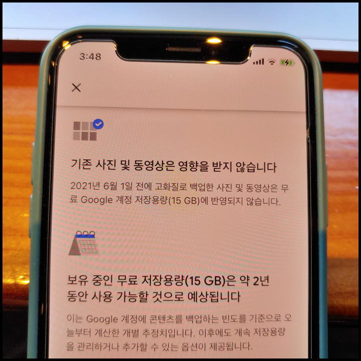 구글 포토 저장용량 15GB까지는 무료입니다. 기존에 15GB 미만 쓰셨던 분이라면 6월 1일 이후에도 무료로 쓸 수 있습니다. 제가 그런 사례입니다. 그런데 구글 포토 15GB 무료 정책이 약 2년 뒤에 어떻게 달라질지 알 수 없습니다. 구글 포토에서는 "보유 중인 무료 저장용량(15GB)은 약 2년 동안 사용 가능할 것으로 예상됩니다"라고 언급되었는데 2년 지나면 정책이 어떻게 달라질지 장담할 수 없습니다.