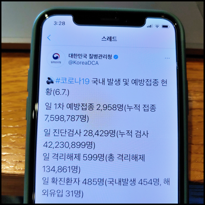 한국의 백신 접종 인원이 계속 늘어나는 중입니다. 6월 10일부터는 얀센 백신 접종이 시작되기 때문에 군 복무 경력이 있는 젊은 세대에서 백신 접종이 늘어날 듯 합니다. 50대 뿐만 아니라 40대, 30대, 20대, 고3 분들 중에도 백신 접종 기다리는 분들이 많기 때문에 자신의 차례가 다가오기를 기다리셔야 할 듯 합니다. 그러면서 한국 국민들 사이에서 집단 면역이 형성되기 때문에 코로나19 확진자가 크게 줄어들 것으로 보이며 사람들의 일상생활이 코로나19 이전 수준으로 회복될 것 같은 기대감이 듭니다.