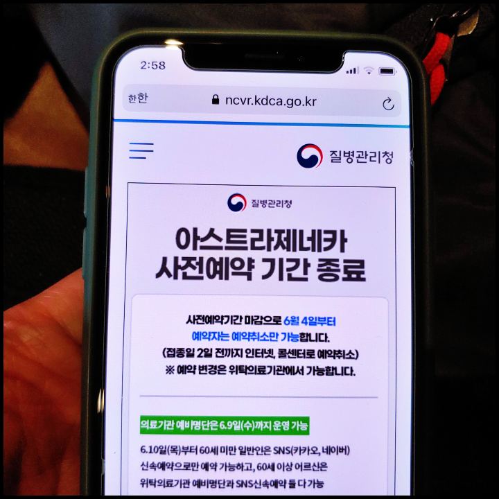 60~64세 백신 접종 시기 : 6월 7일 목요일부터 6월 19일 토요일까지(아스트라제네카 접종)