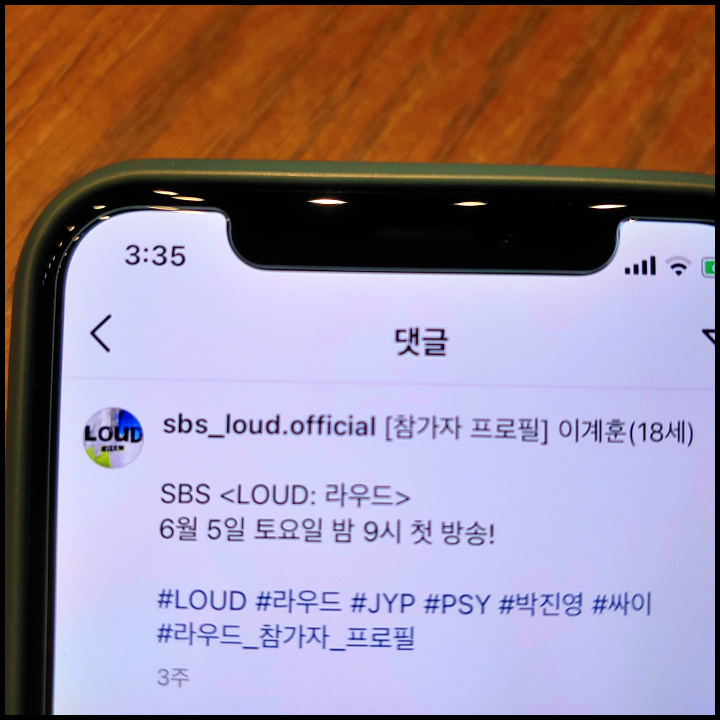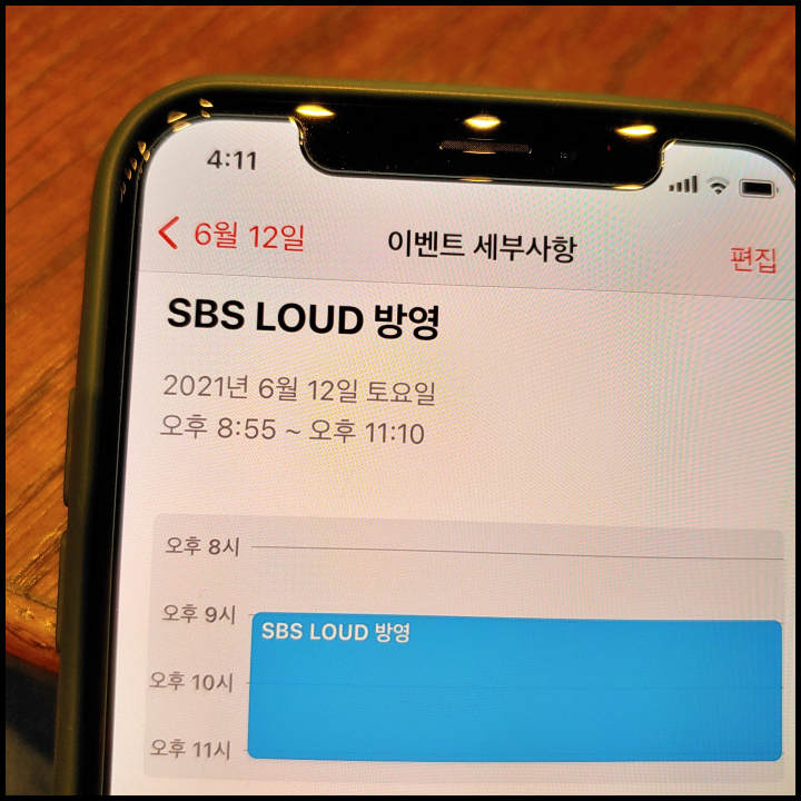 [사진 = 지난 2021년 6월 12일 SBS LOUD 2화 방영됐습니다. 사진은 저의 스마트폰 달력이며 2021년 6월 12일을 가리킵니다. (C) 나이스블루]