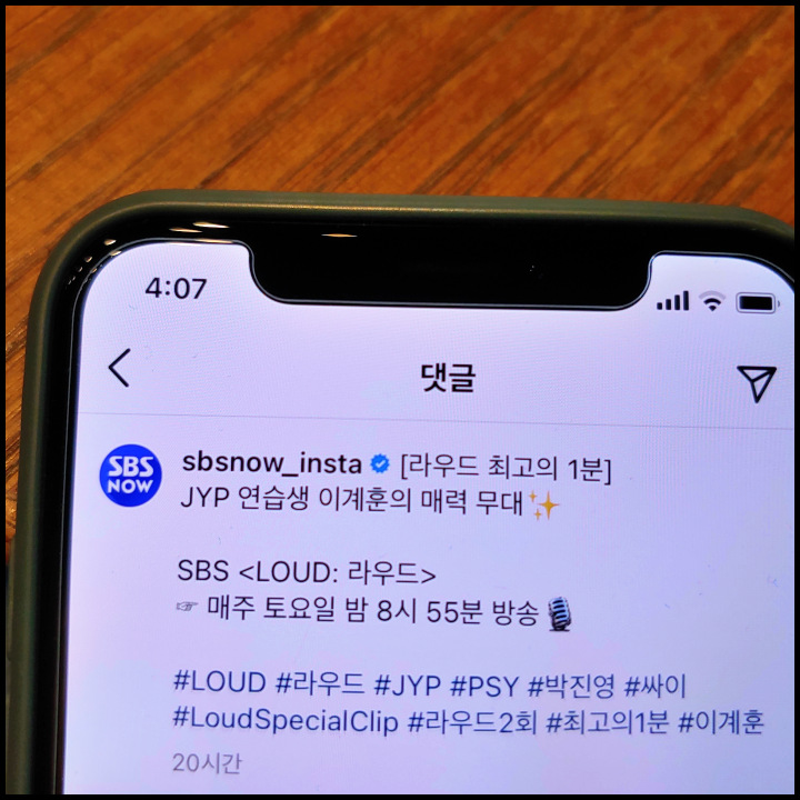 [사진 = SBS 공식 인스타그램에서는 라우드 최고의 1분으로 JYP 연습생 이계훈 무대를 꼽았습니다. (C) SBS 공식 인스타그램]