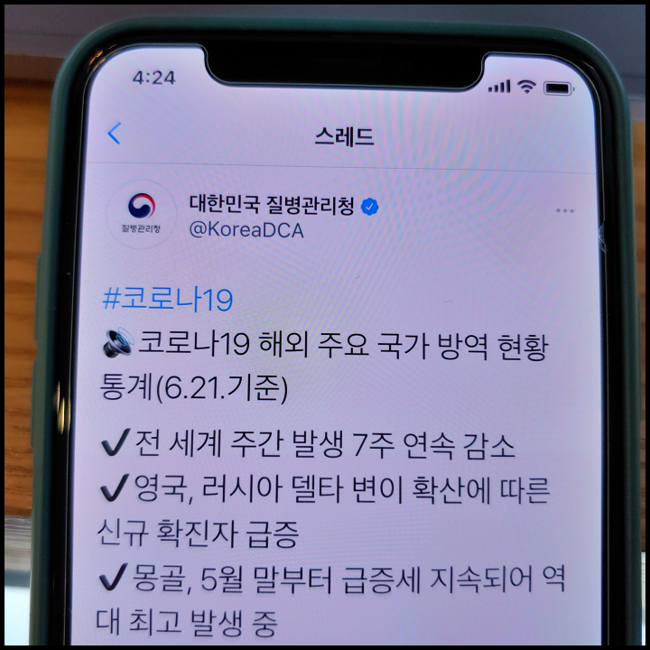 특히 정은경 질병관리청장이 6월 24일 온라인 정례 브리핑을 통해 한국의 델타 변이가 190건 확인되었으며 지역감염 사례가 3건 보고되었다고 밝히면서 눈길을 끌었습니다. 한국은 유입 초기 단계라고 합니다. 이는 한국에서도 델타 변이 바이러스 사례가 있다는 것을 알 수 있습니다. 현재 세계 여러 나라에서 델타 변이 확인되었는데 이제는 한국도 예외가 아니라고 합니다. 현재 우리나라의 백신 접종자가 1,500만 명(최소 1차 기준) 돌파했음에도 델타 변이가 거듭 확인되면서 델타 변이 백신 효과가 있을지 궁금하게 느끼는 분이 있을지 모를 일입니다. 그런 일이 반드시 없기를 바라지만, 만약 효과가 없다면 코로나19 종식은 더욱 어려워지는 것이 아니냐는 걱정이 들게 됩니다. 저 같은 경우에도 얼마 전 얀센 백신 접종 뿐만 아니라 2일차 되면서 부작용을 심하게 경험했기 때문에 더 이상 백신 접종은 안하고 싶은 생각 듭니다. 얀센은 1차만 접종해도 됩니다.