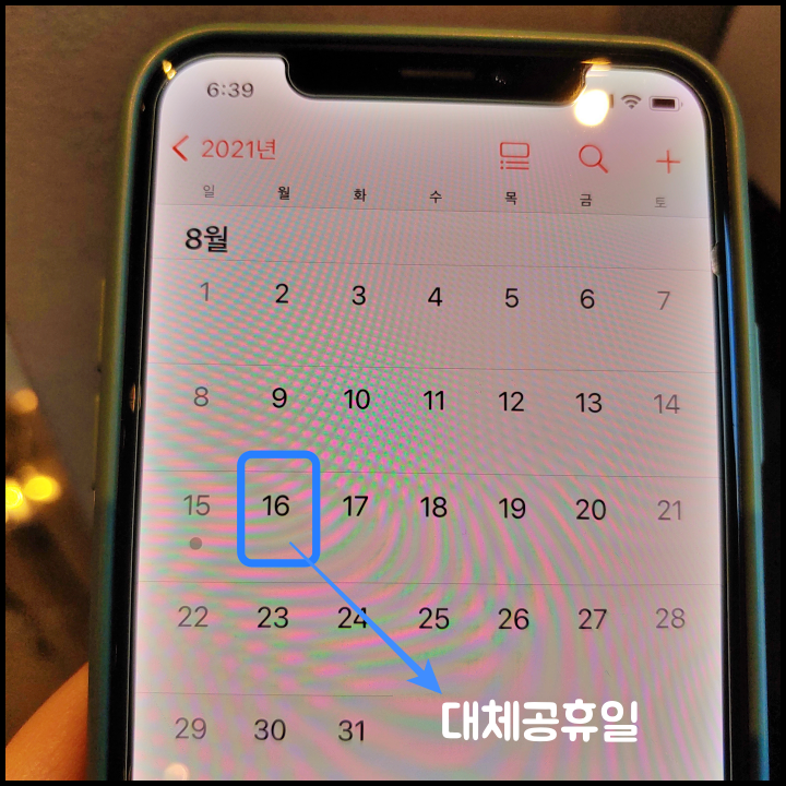 [사진 = 2021년 8월 10월 12월 대체공휴일 이렇습니다. 사진은 저의 스마트폰 달력입니다. (C) 나이스블루]