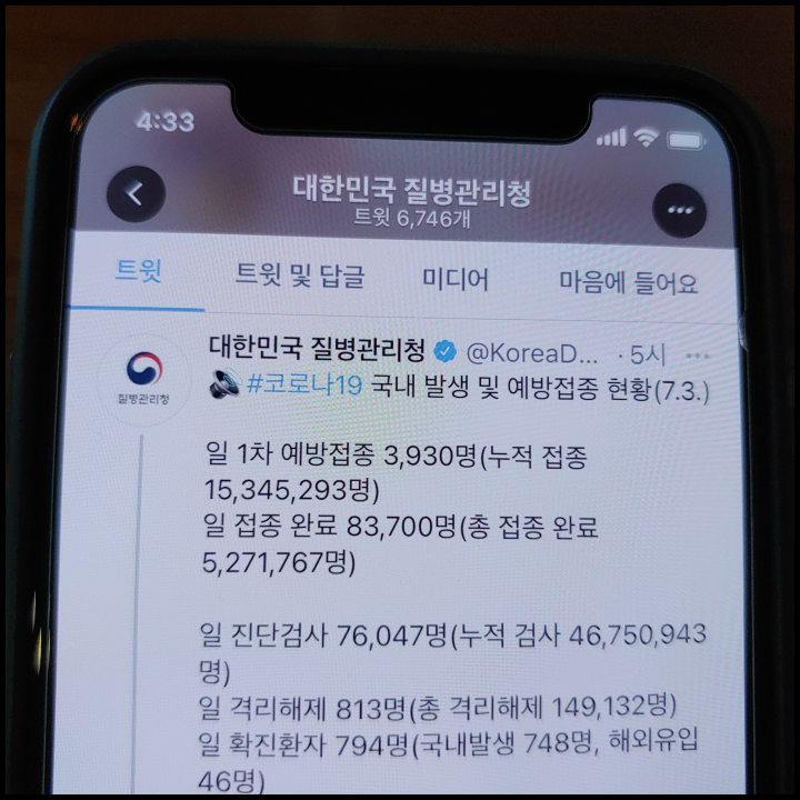 [사진 = 한국의 백신 접종자가 1,500만 명 넘었음에도(1차 접종 포함) 여전히 확진자가 많이 나오는 상황입니다. 이에 보건복지부는 지난 6월 30일 정례브리핑 통해서 7월 1일부터 새로운 사회적 거리두기 시행했으나 수도권은 7월 1일부터 7월 7일까지 1주일 동안의 유예가 내려졌다고 합니다. 따라서 5인 이상 사적모임 금지 조치는 현재 유지중입니다. (C) 보건복지부 공식 트위터]