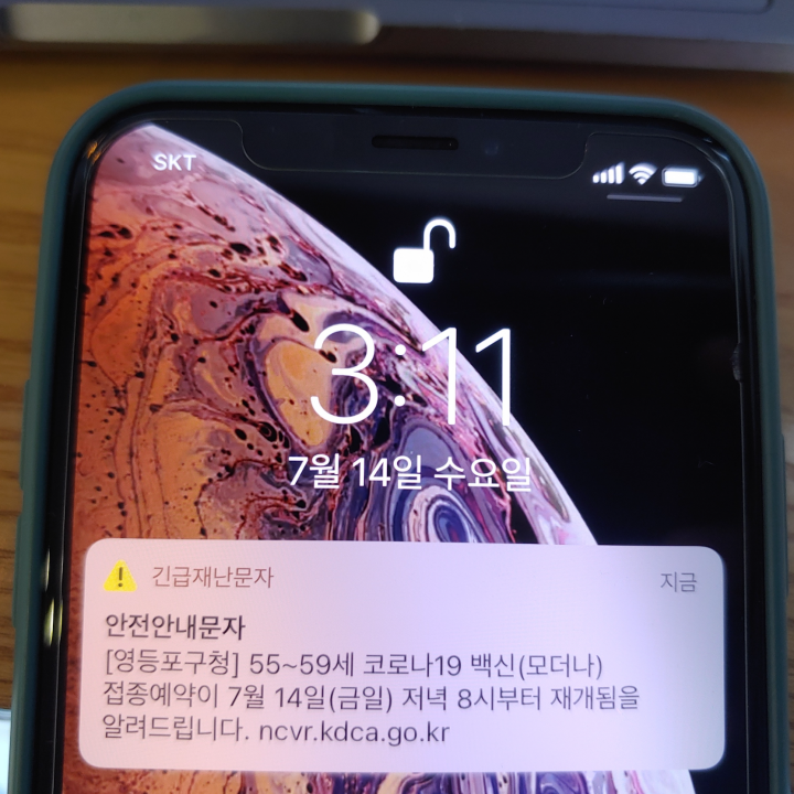 영등포구청에서 저의 스마트폰을 통해 발송된 안전안내문자를 보니 55~59세 코로나19 백신 접종예약 재개 예정임을 알 수 있었습니다. 제가 이 포스팅을 작성하는 7월 14일 오후 8시부터 재개된다고 합니다. 이미 최소 60대 이상 분들의 백신은 최소 1차 접종이 거의 끝난 것으로 압니다. 아니면 이미 다 끝났거나 말입니다. 이제는 55세이상 백신 접종 예약 차례가 왔는데 다시 신청할 수 있다고 합니다. 만약 신청 다시 시작된다면 그때도 접속자가 폭주할 가능성이 있다는 점에서 55세이상 백신 접종 시기 신청 마감 타이밍 익히는 것도 나쁘지 않을 듯 합니다.